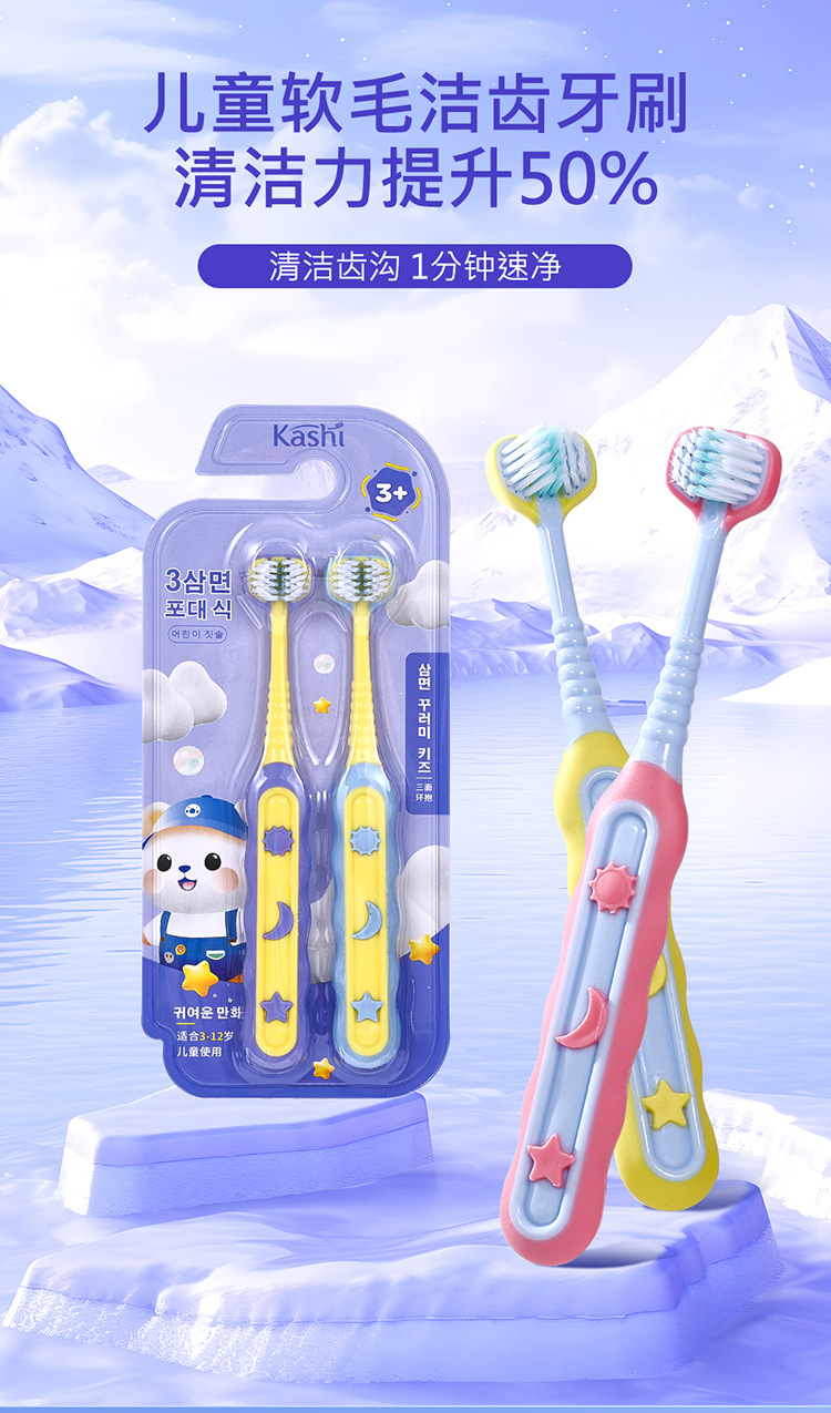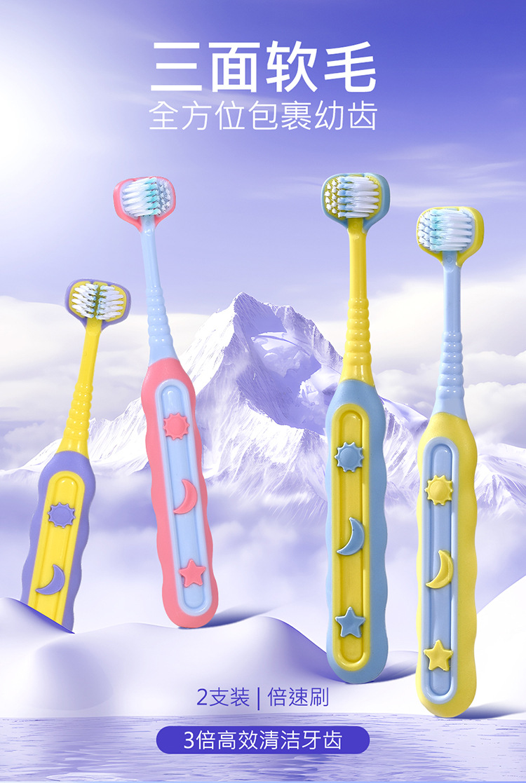 【2개입】어린이용 삼면칫솔 부드러운 칫솔모 3-12세 전용 치아교정기능 입체적 세정 치아교정기간스토어 가기