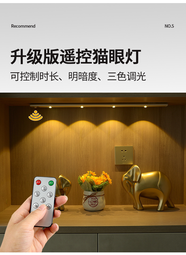 고양이 눈 조명 스포트라이트 골판지 조명 캐비닛 조명 스마트 충전 원격 제어 와인 캐비닛 옷장 조명 힐 인체 센서 조명