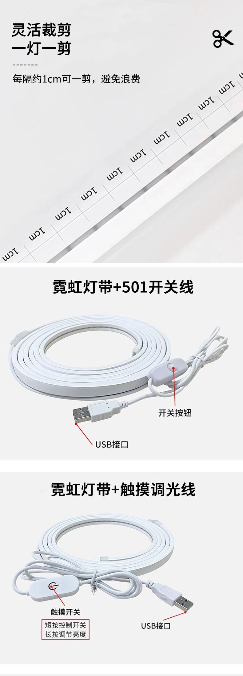 Led 저전압 네온 usb 스위치 화장 거울 5v 야외 방수 거실 침실 유연한 실리콘 방수 라이트 스트립