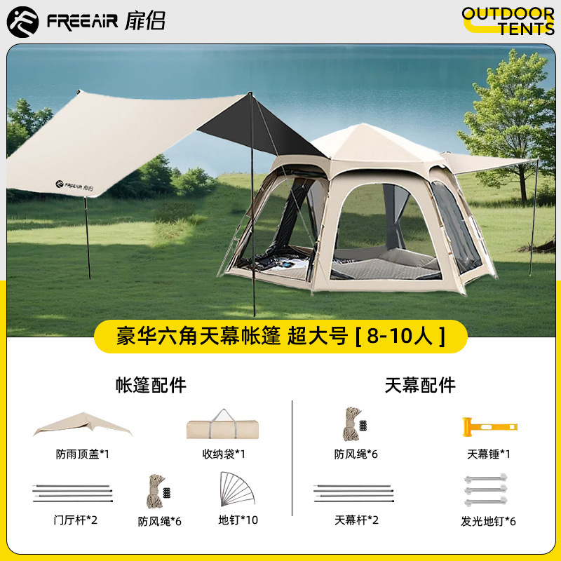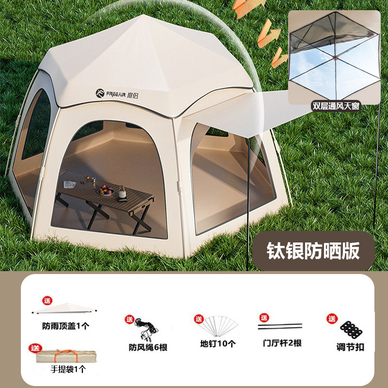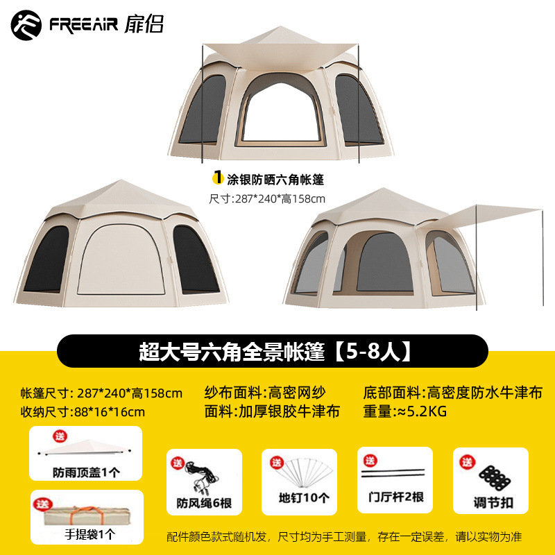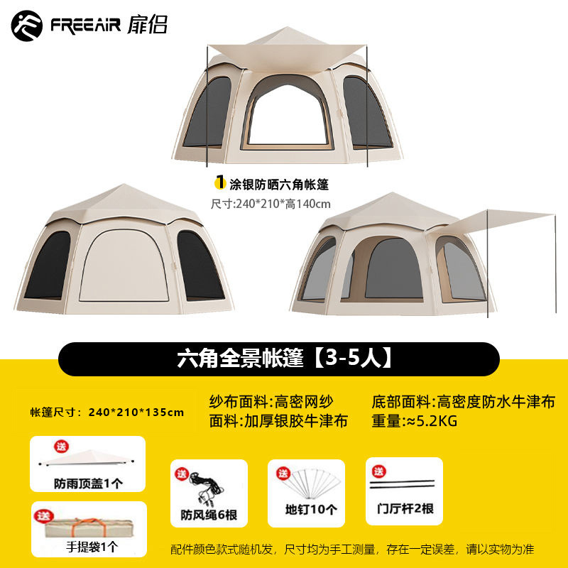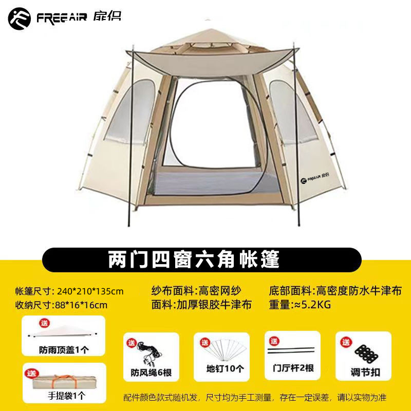 설치가 필요 없는 육각형 텐트 야외 캠핑 장비 가족 두꺼운 야외 공원 휴대용 접이식 모델