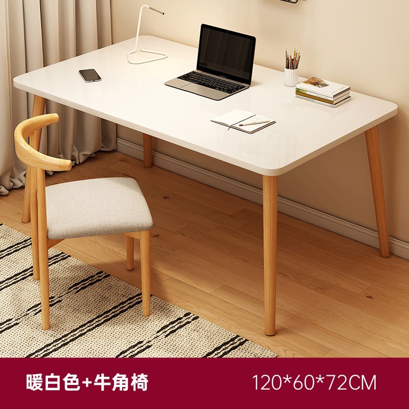 • 【테이블과 의자 조합 ★ 싱글테이블+뿔의자] 웜화이트 120*60*72CM