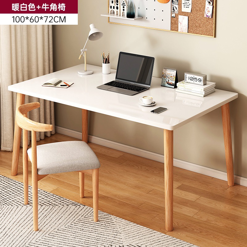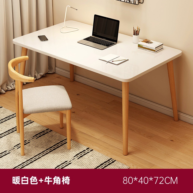 • 【테이블과 의자 조합 ★ 싱글 테이블 + 혼체어] 웜화이트 100*60*72CM