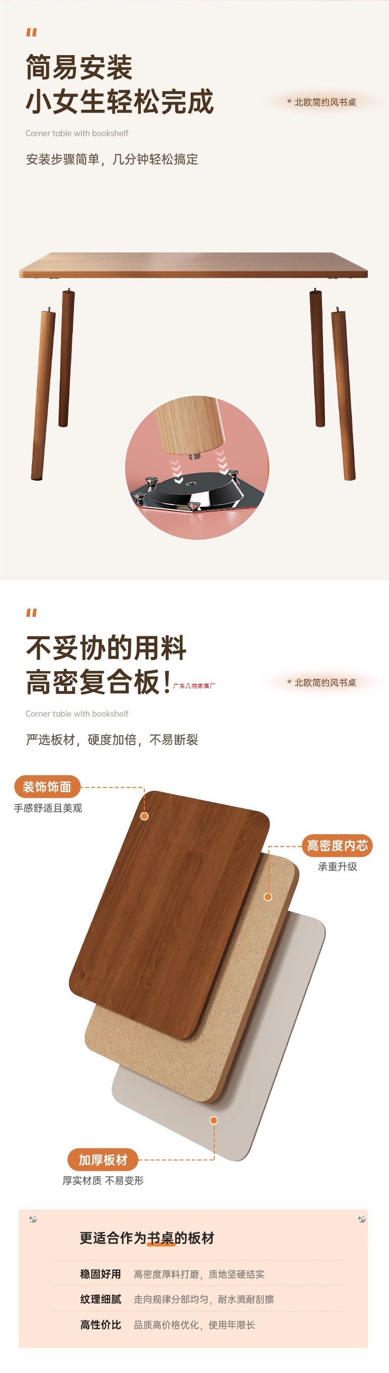 • 【테이블과 의자 조합 ★ 싱글테이블+뿔의자]오크색상 80*40*72CM