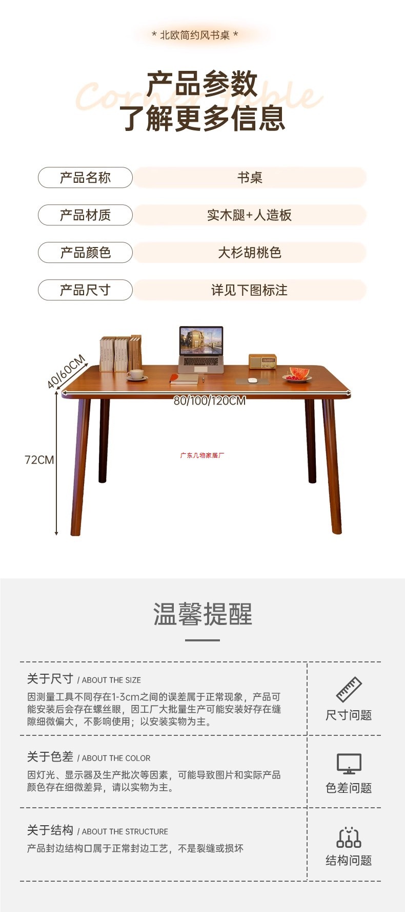 • 【테이블과 의자 조합 ★ 싱글테이블+뿔의자] 월넛색상 100*60*72CM
