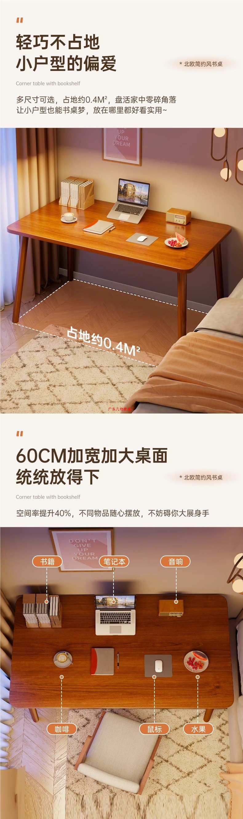 • 【테이블과 의자 조합 ★ 싱글테이블+뿔의자] 월넛색상 80*40*72CM