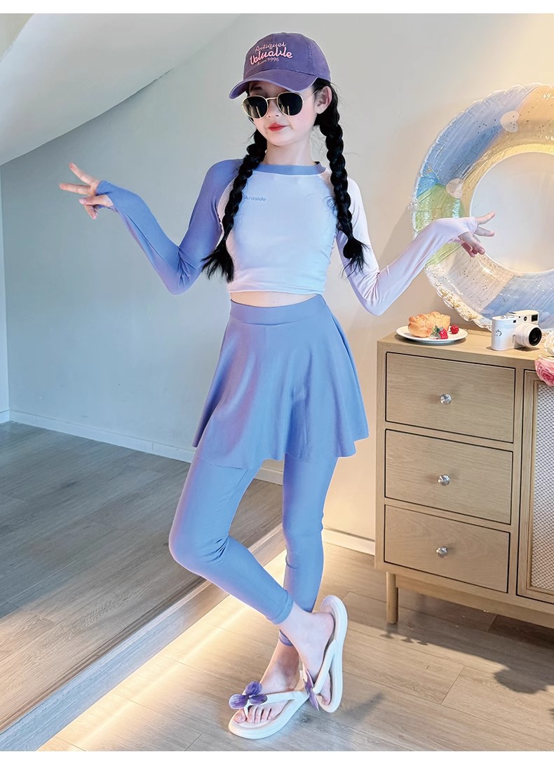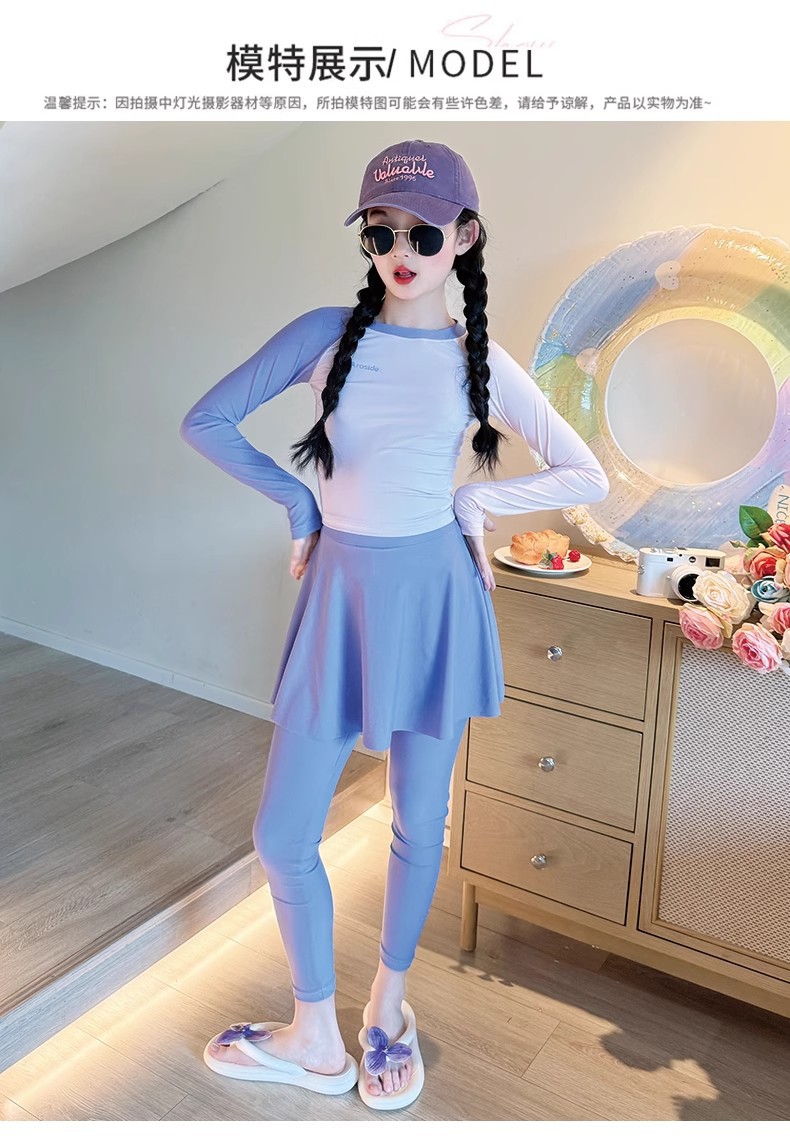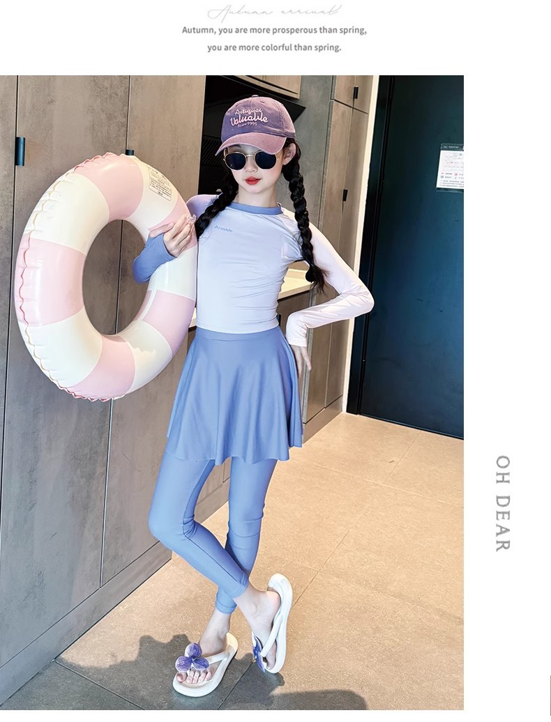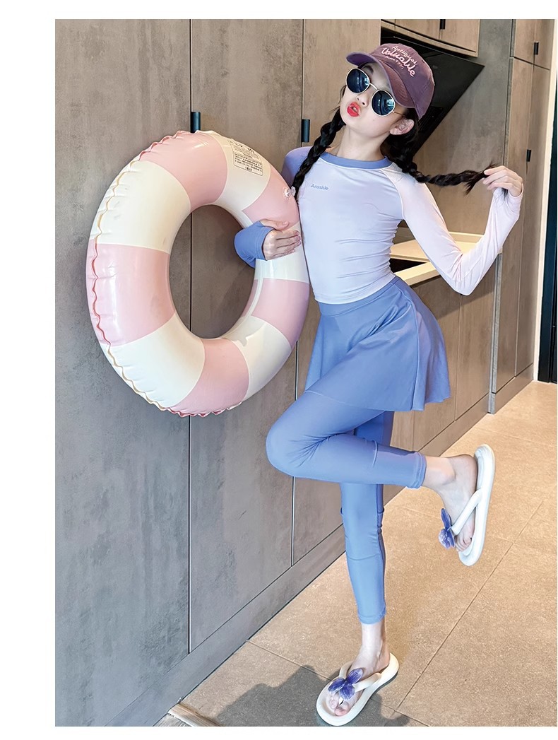 여아용 고급 수영복 2025 새로운 스타일의 아동용 긴팔 긴바지 수영복 큰 어린이용 여아용 스플릿 자외선 차단 수영복스토어 가기