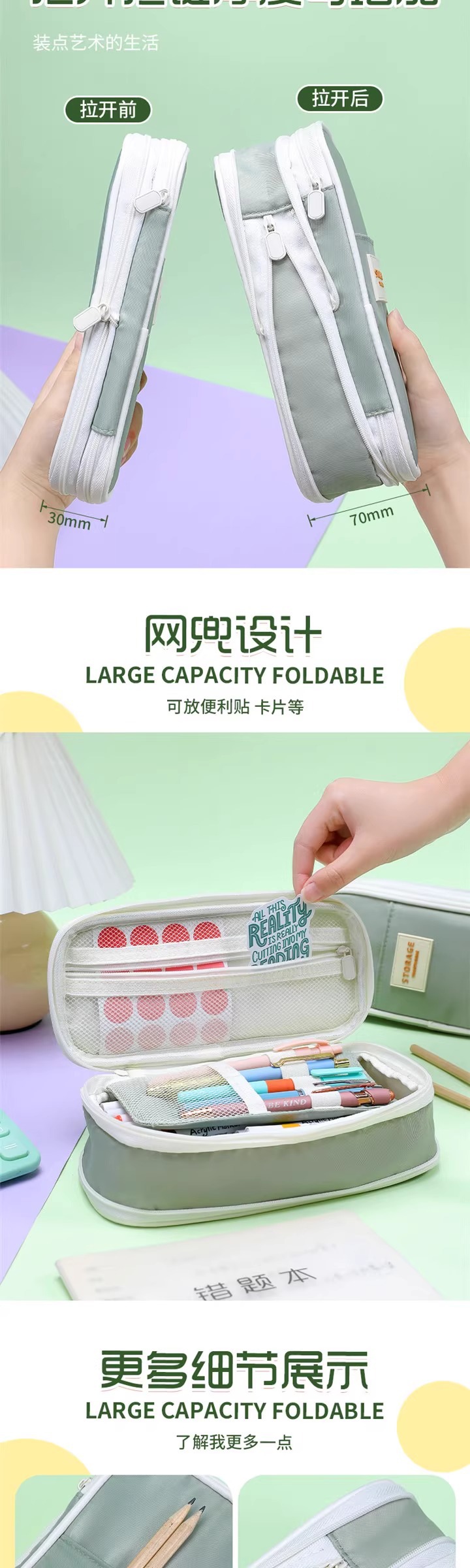 필통 대용량 마카롱 컬러 블록 능직 변형 가능한 학생 간이 필통 일본식 및 한국식 접이식 필통스토어 가기