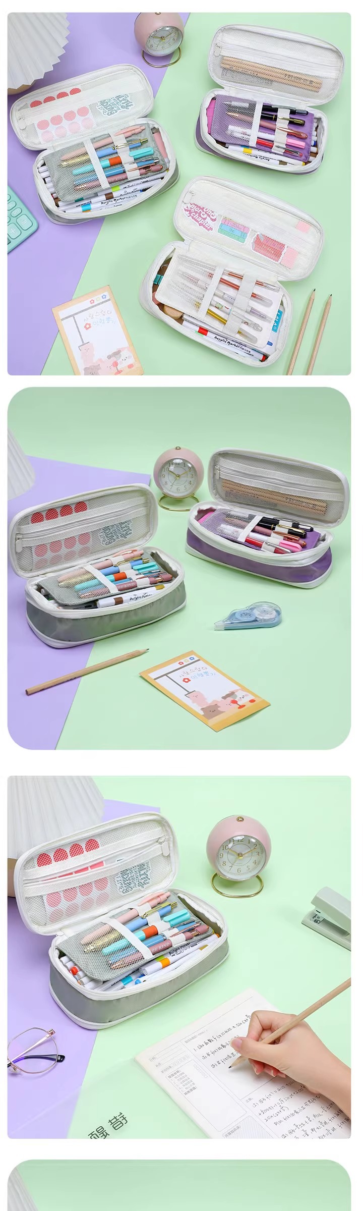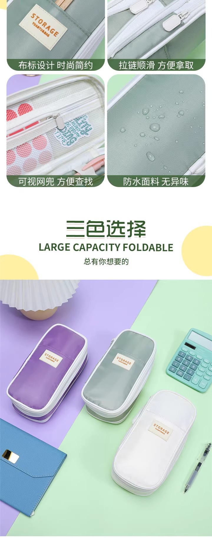 필통 대용량 마카롱 컬러 블록 능직 변형 가능한 학생 간이 필통 일본식 및 한국식 접이식 필통