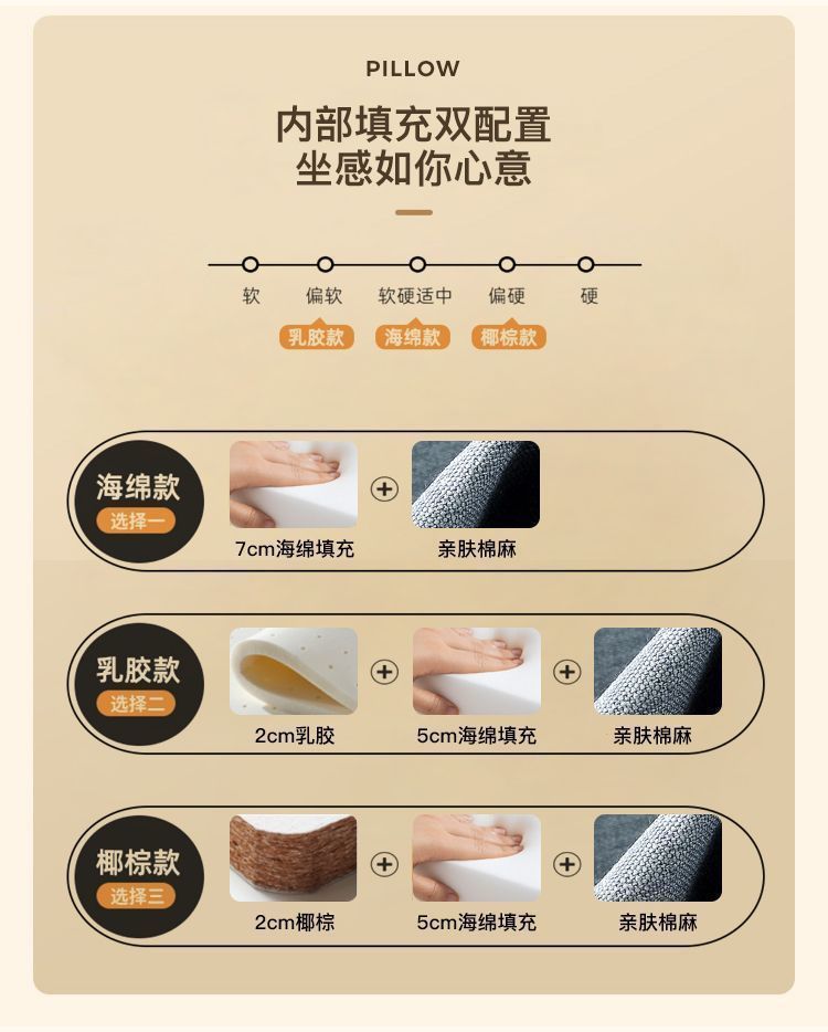 • 베이지 블랙 프레임 + 탈부착 및 세탁 가능 [베개 포함]