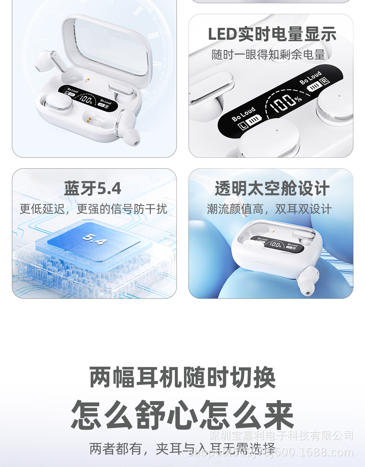 국경 간 새로운 Q8 블루투스 헤드셋 TWS 무선 이어폰 긴 배터리 수명 디지털 디스플레이 전원 소음 감소 투명 공간 캡슐스토어 가기