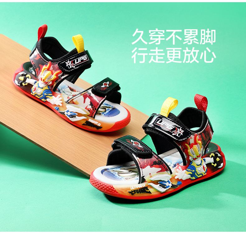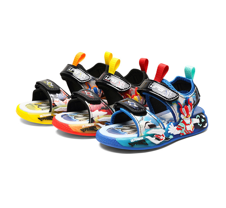PLUS Ultraman Boys 2025 새로운 만화 어린이 샌들 아기 소년 빛나는 신발 비치 샌들스토어 가기
