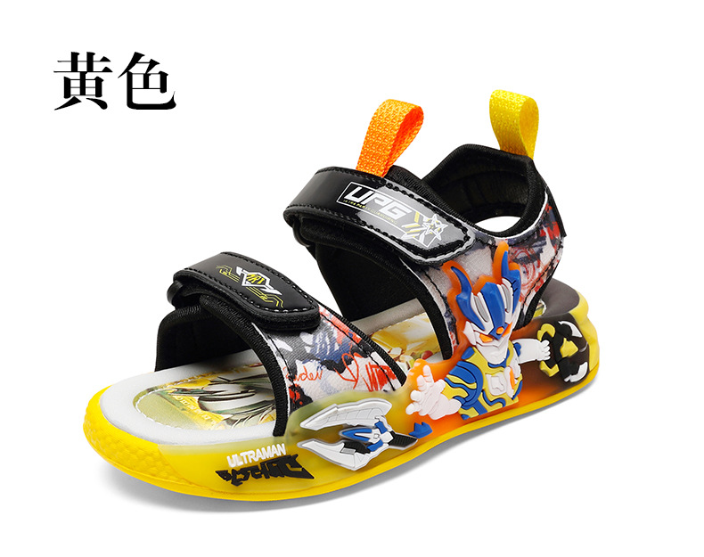 PLUS Ultraman Boys 2025 새로운 만화 어린이 샌들 아기 소년 빛나는 신발 비치 샌들