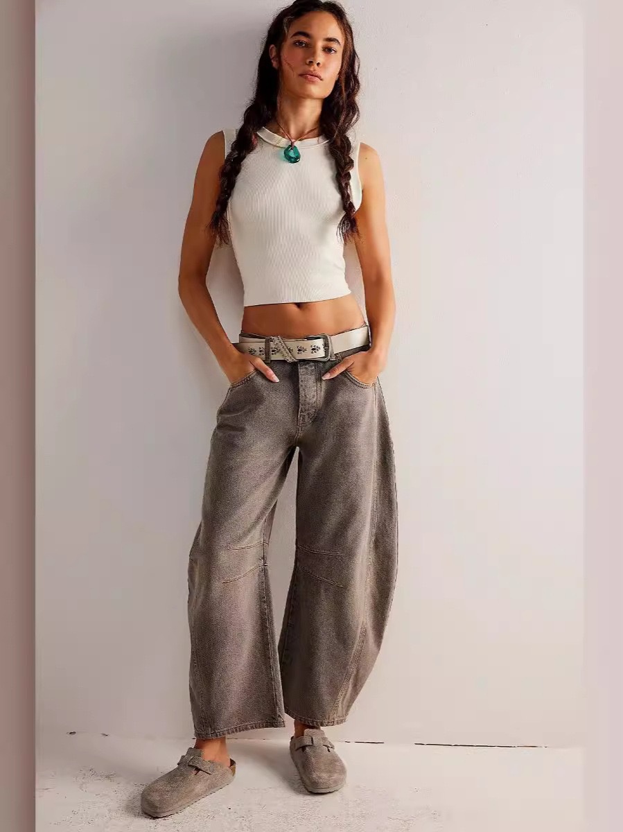 여성을위한 레트로 바나나 하렘 청바지 2025 가을 새로운 하이 웨이스트 루즈 슬림 캐주얼 아빠 당근 바지