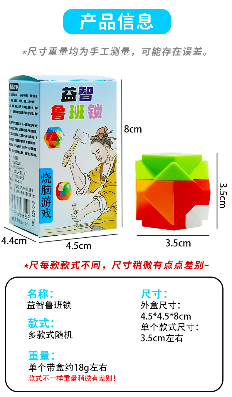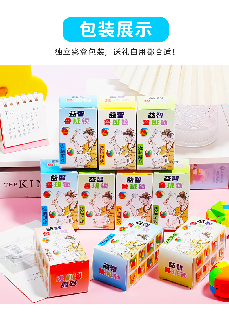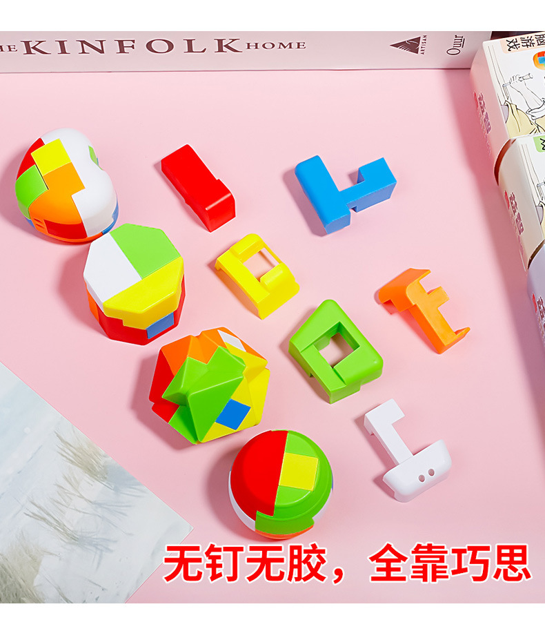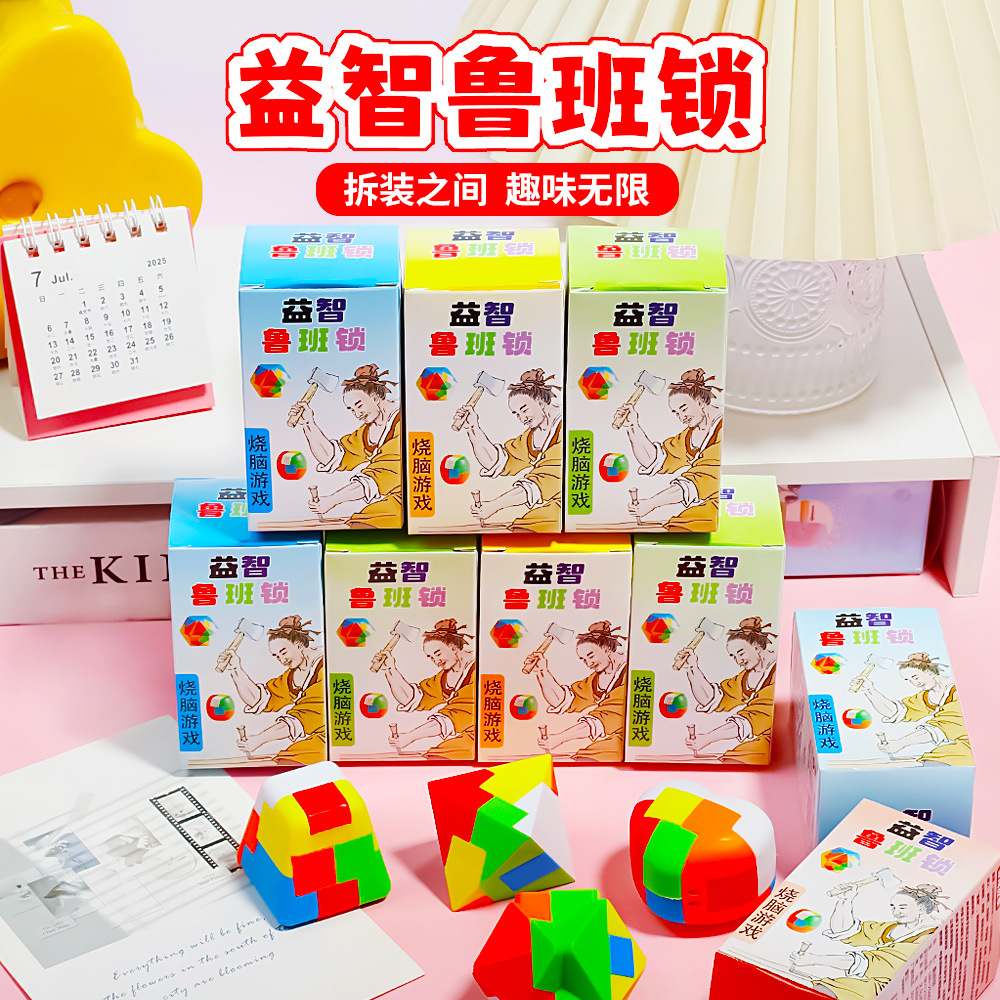 새로운 지능 박스형 Luban Lock Kongming Lock 어린이 지능 퍼즐 잠금 해제 장난감 모따기 구조 장난감스토어 가기