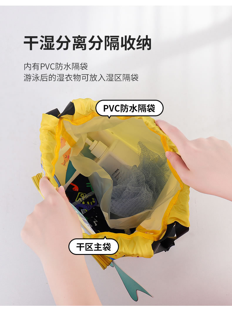어깨 스포츠 방수 보관 가방 수영 가방 패션 귀여운 어린이 ✅ 소년과 소녀 만화 건식 및 습식 분리 휴대용스토어 가기