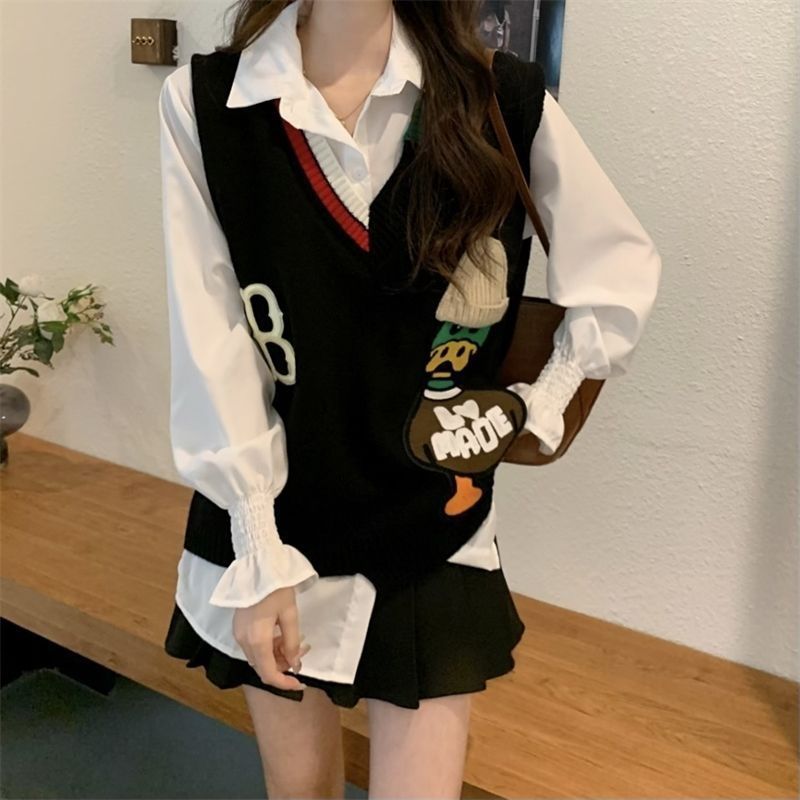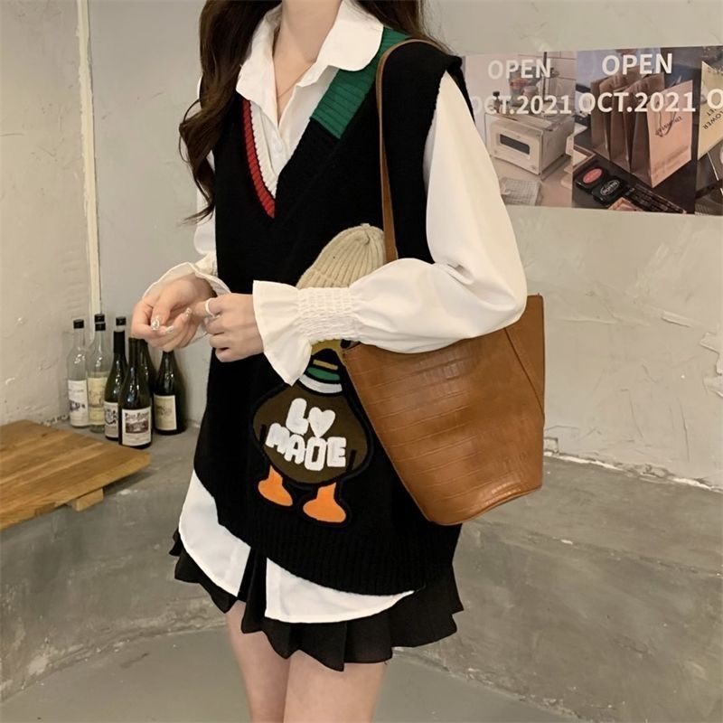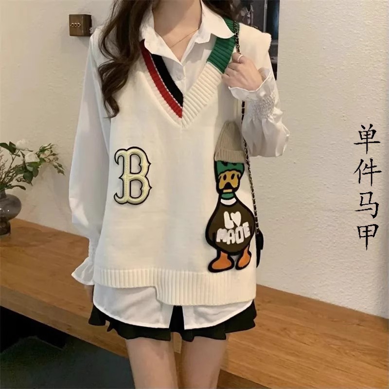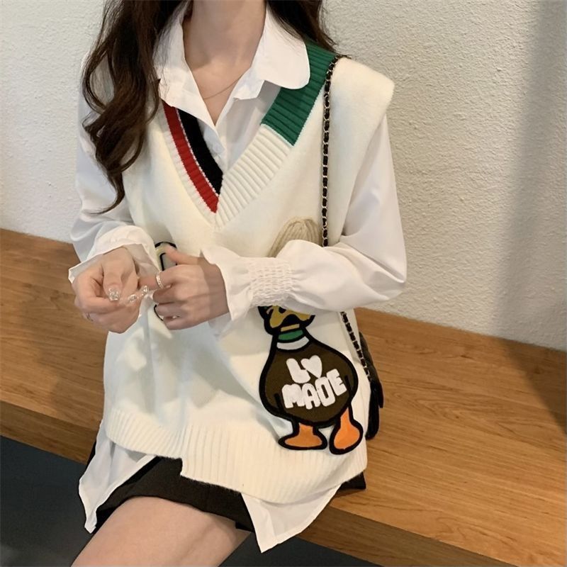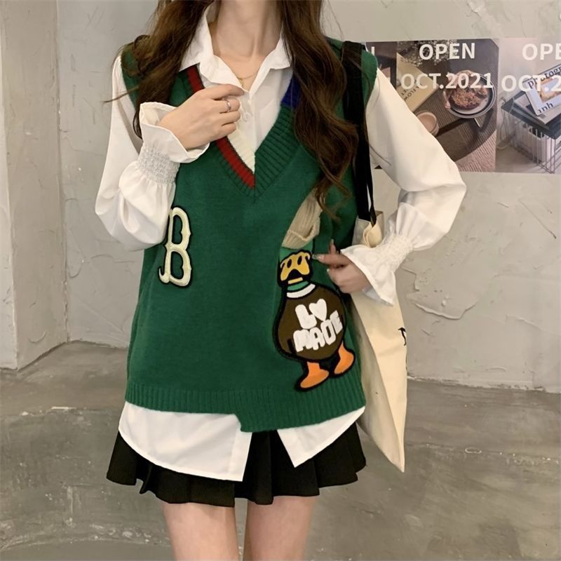만화 니트 싱글 조끼 코트 봄과 가을 새로운 스타일 게으른 스타일 v 넥 풀오버 민소매 조끼 스웨터 여성 유행스토어 가기