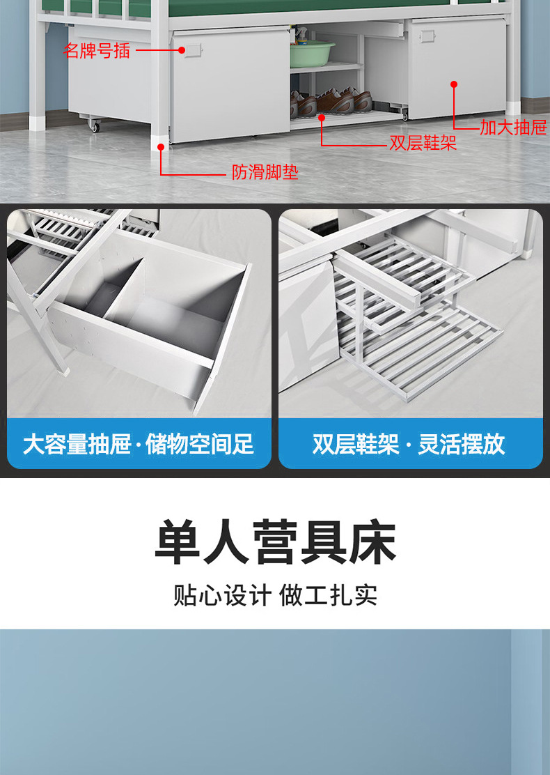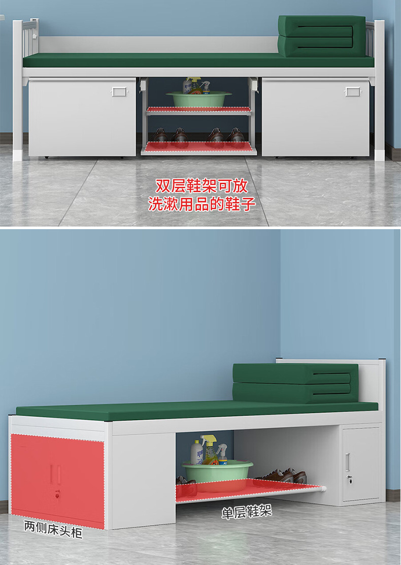 표준 이층 침대, 높낮이 침대, 이층 철제 프레임 침대, 기숙사 싱글층 철제 프레임 침대, 침대 밑 캐비닛이 있는 철제 프레임 침대스토어 가기