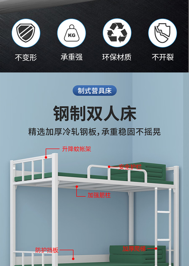 표준 이층 침대, 높낮이 침대, 이층 철제 프레임 침대, 기숙사 싱글층 철제 프레임 침대, 침대 밑 캐비닛이 있는 철제 프레임 침대