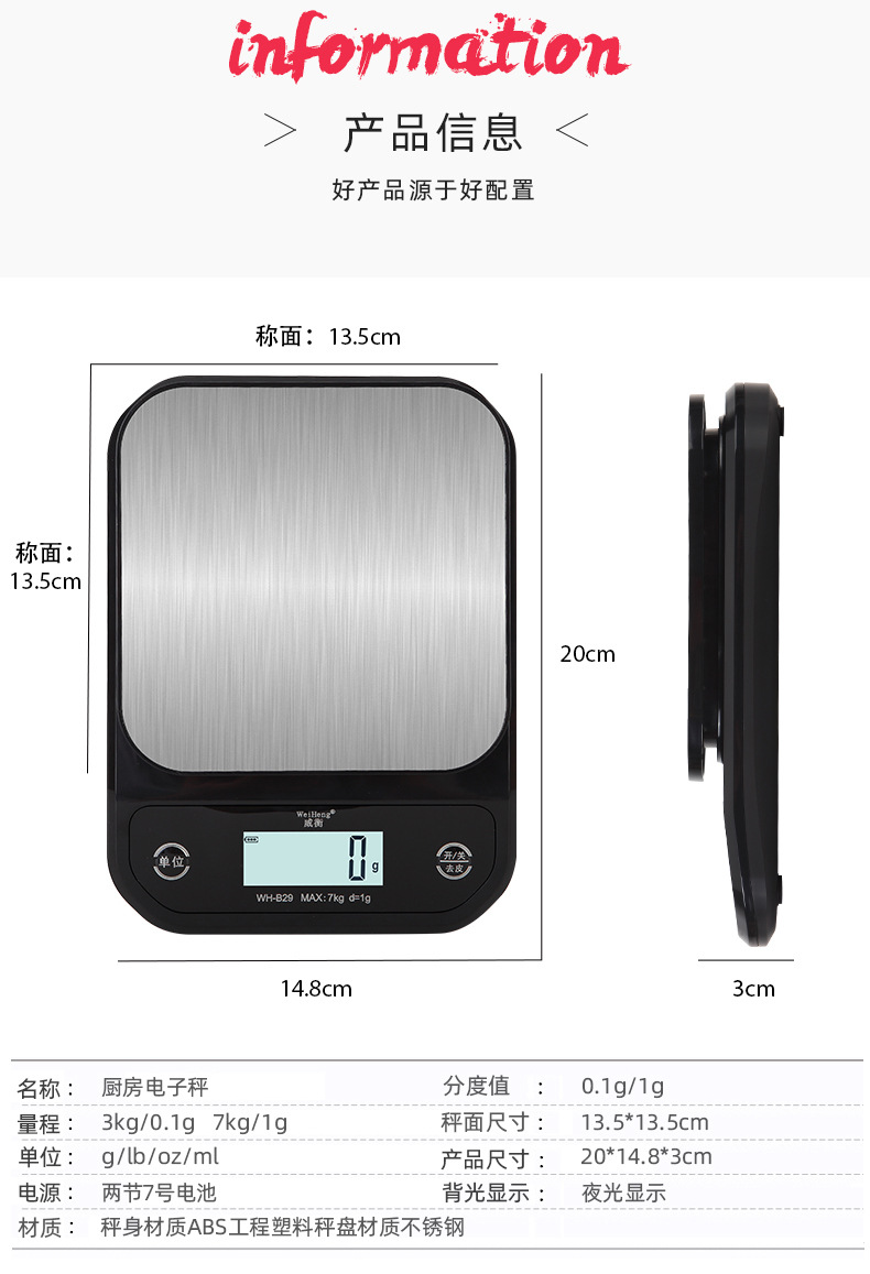 원스톱 배송 웨이헨 가정용 방수 탁상형 전자저울 고정밀 그램 저울 전자저울 주방저울