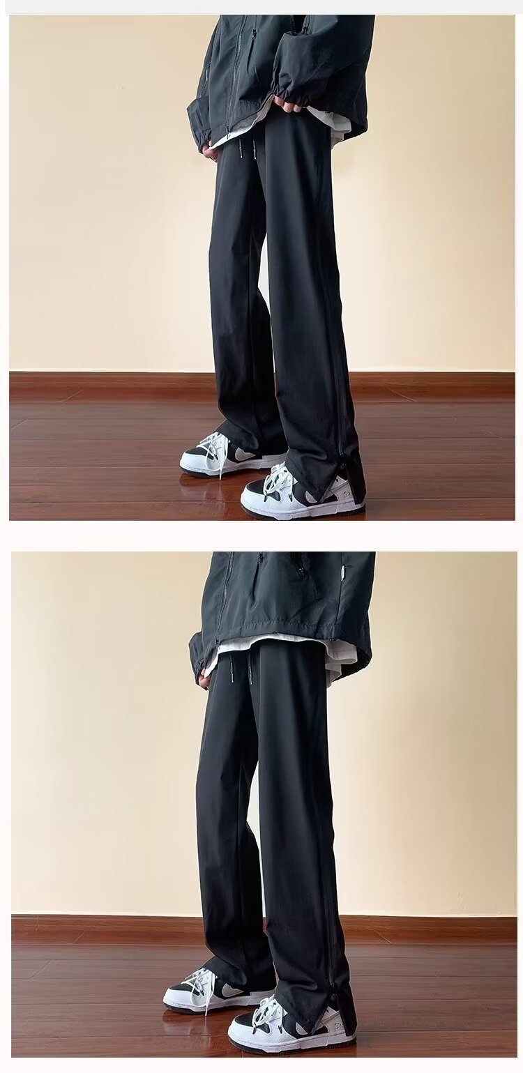 아메리칸 바이브 스타일 팬츠 하이 스트리트 지퍼 슬릿 방수 아웃도어 팬츠 남성용 기능성 슬림 스트레이트 속건성 오버올