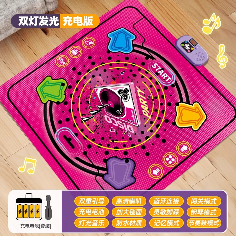 • 뮤직 댄스 매트-.핑크 이중 조명 충전식 배터리 버전[블루투스/발광 버튼 안내/다중 모드].