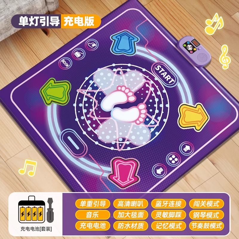 • 뮤지컬 댄스 매트 - 단일 램프 충전식 배터리 버전 [블루투스/발광 버튼 안내/다중 모드].