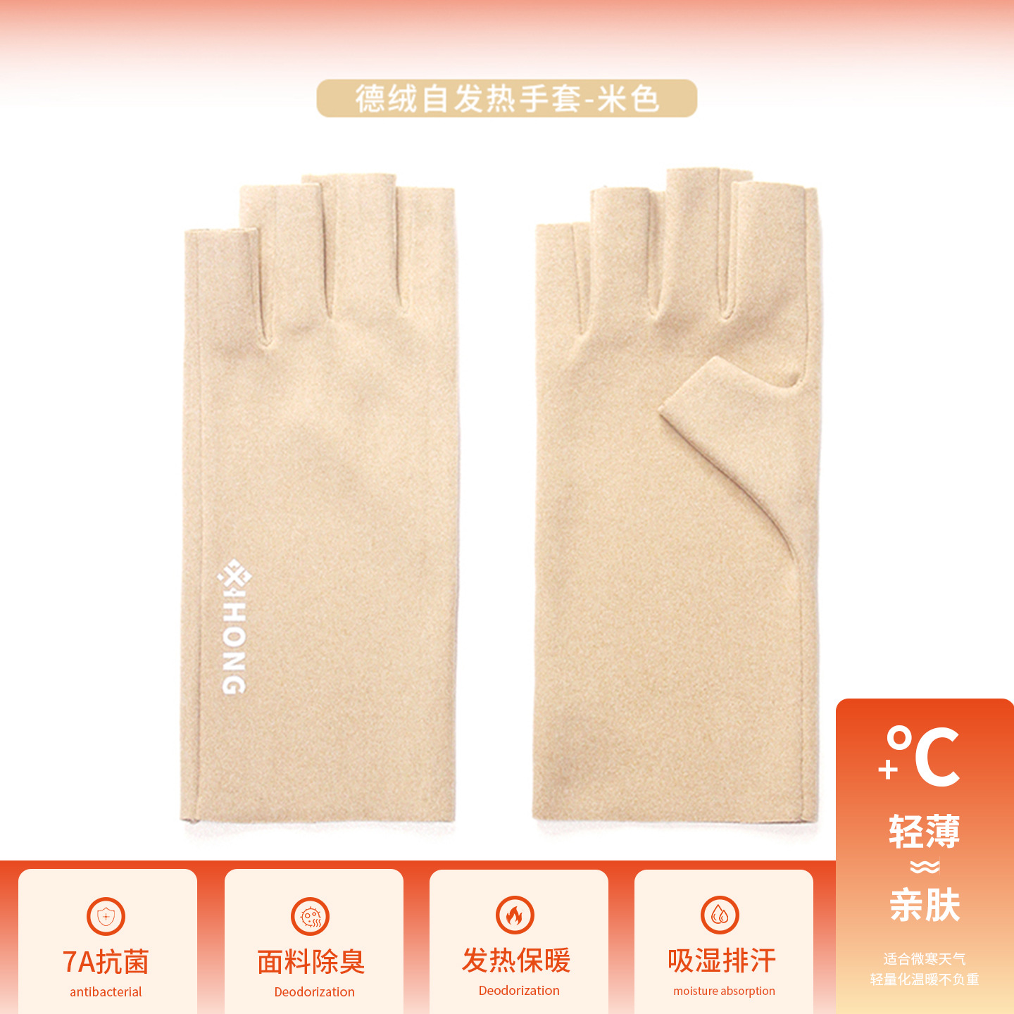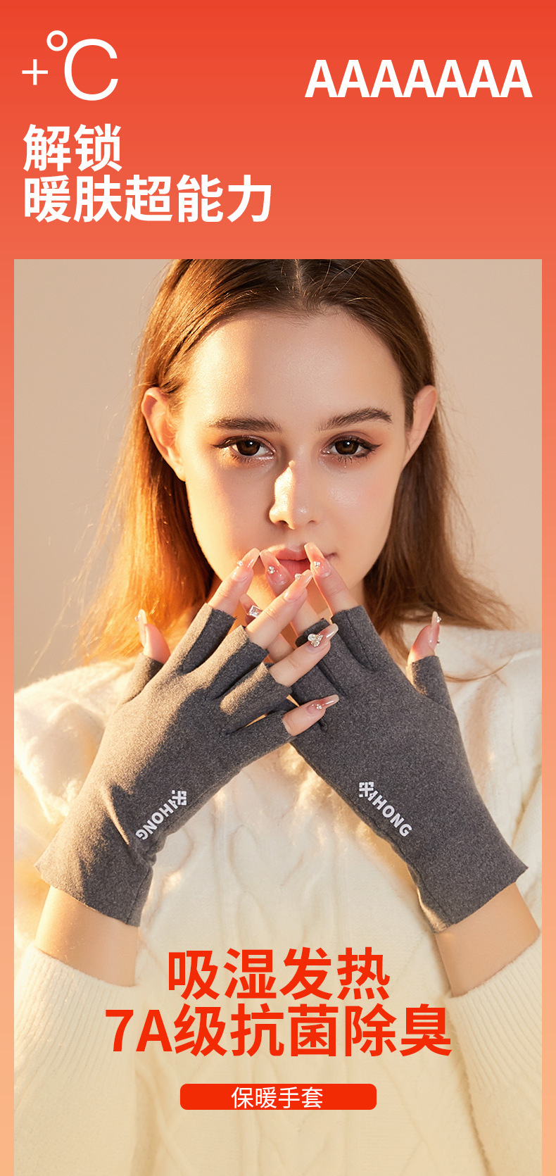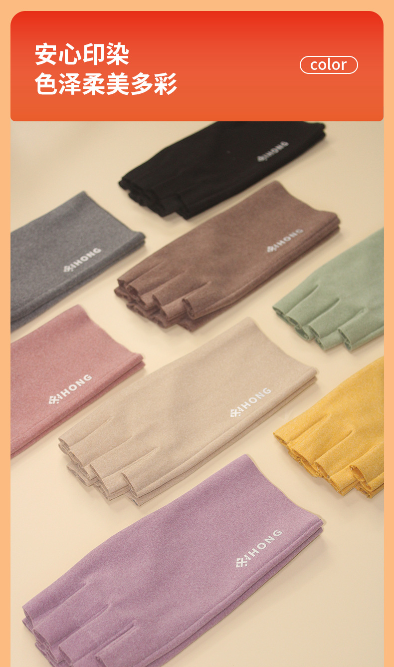 자체 발열 필기 따뜻한 장갑, 항균 및 탈취 학생 가을 겨울 소녀의 반 손가락 매니큐어 슬리밍 벨벳 장갑스토어 가기