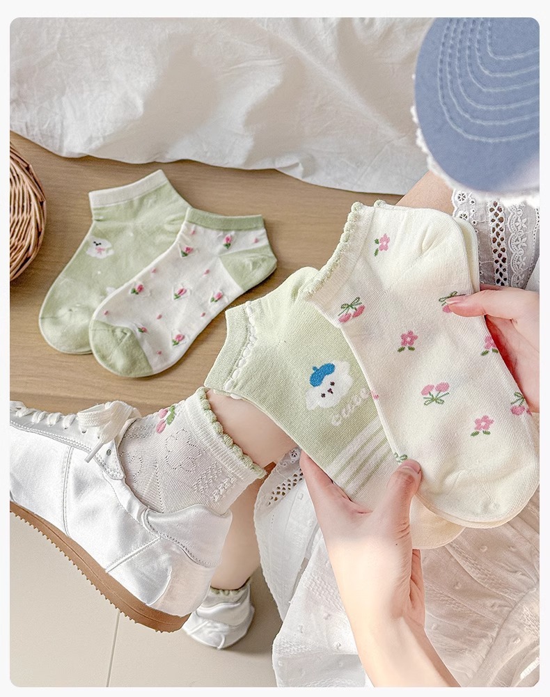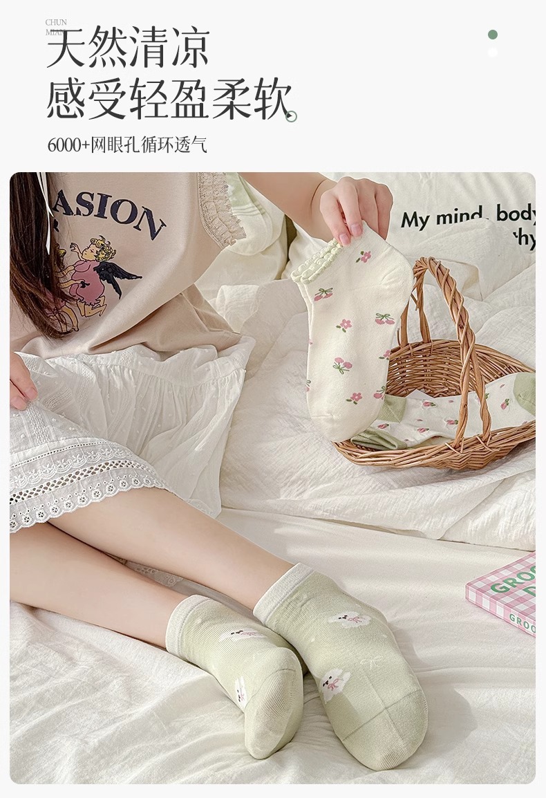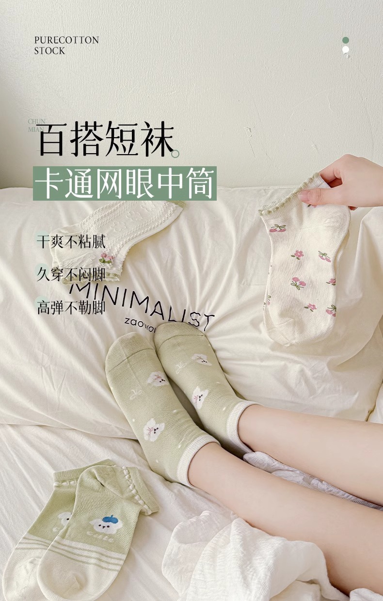 여성용 얇은 만화 강아지 양말, 다용도 캐주얼 통기성 그린 메쉬 중목 양말스토어 가기