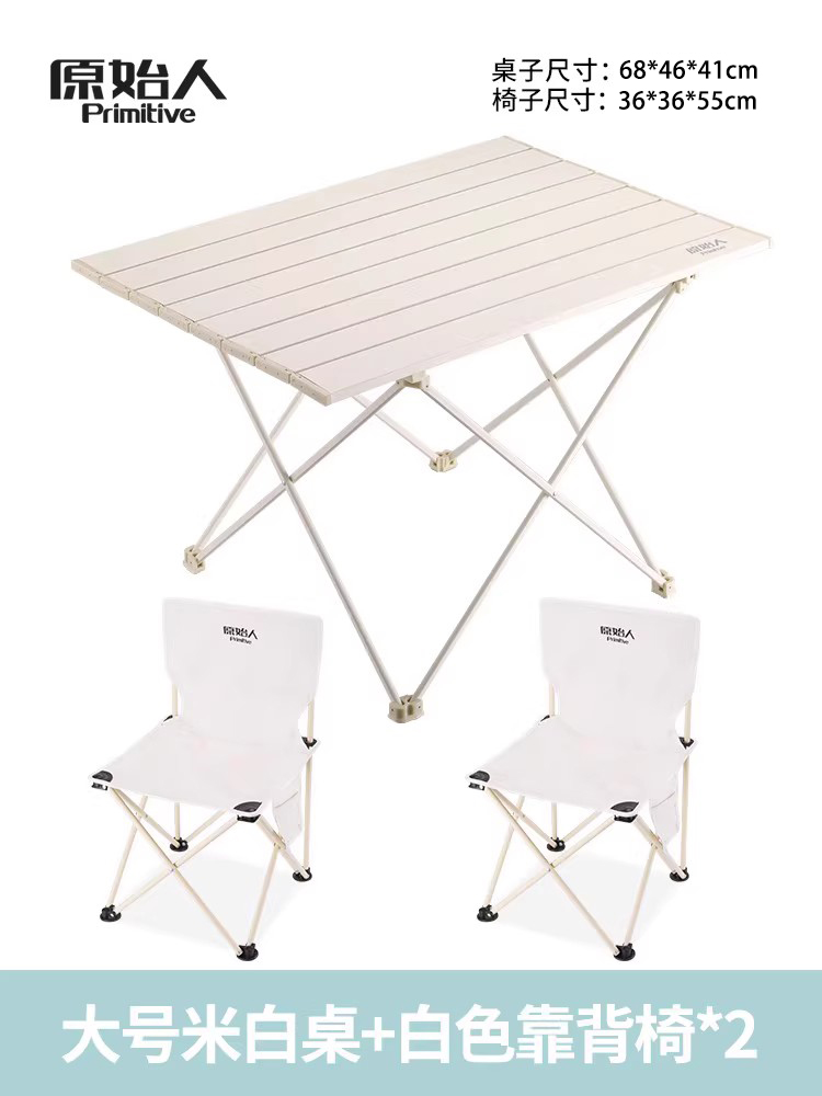 • 대형 황백색 테이블 + 흰색 등받이 의자*2(의자 적재 용량은 약 130kg )