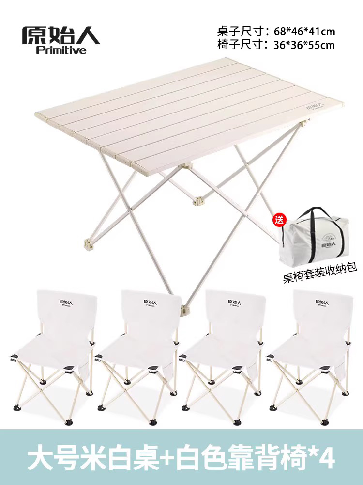 • 대형 황백색 테이블 + 흰색 등받이 의자*4(의자 내하중은 약 130kg )
