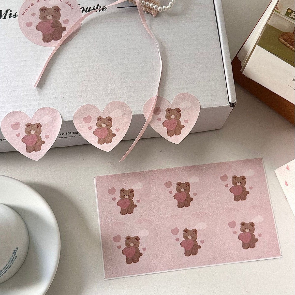 오리지널 인 핸드 페인팅 베어 러브 스티커 소녀 하트 핸드북 선물 씰링 스티커 사진 벽 베이킹 꽃스토어 가기