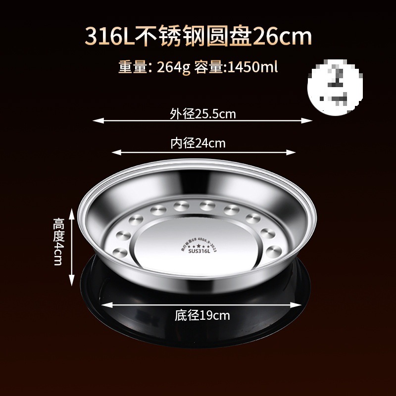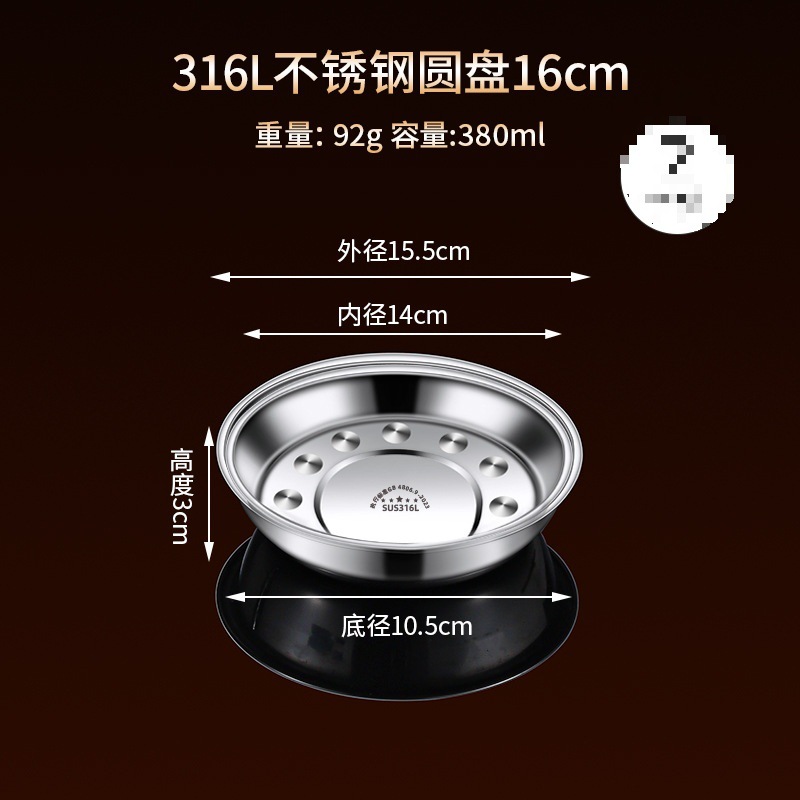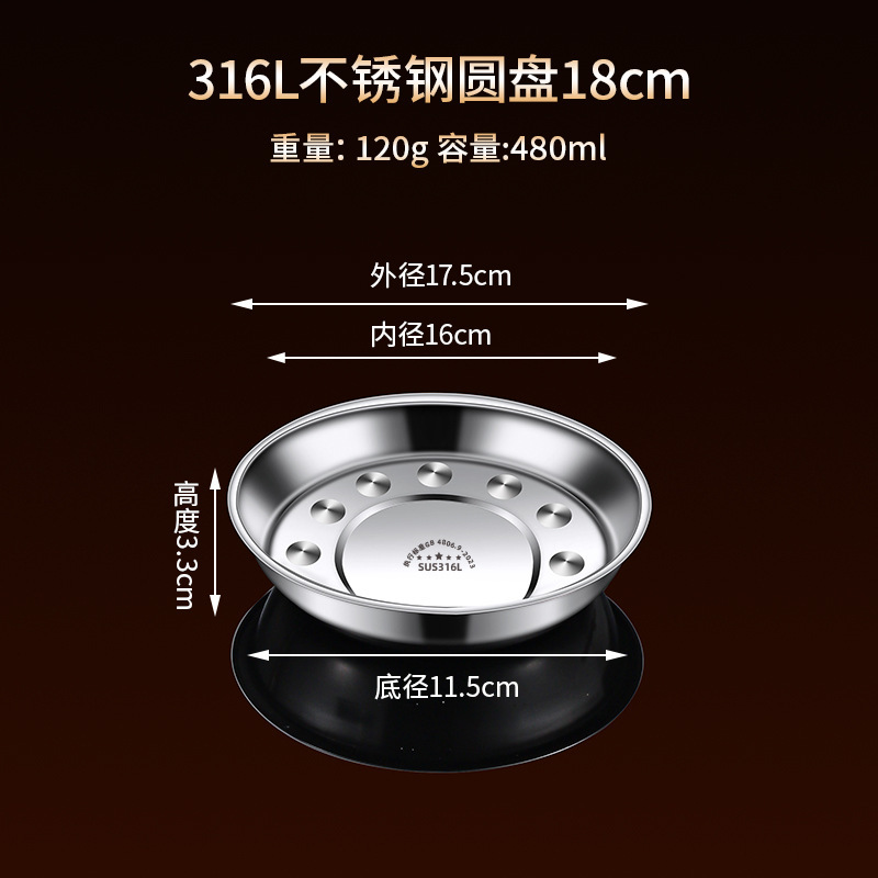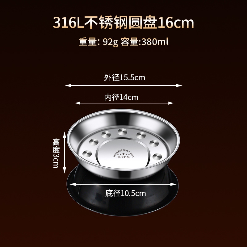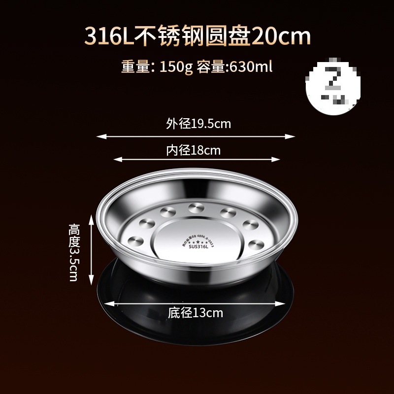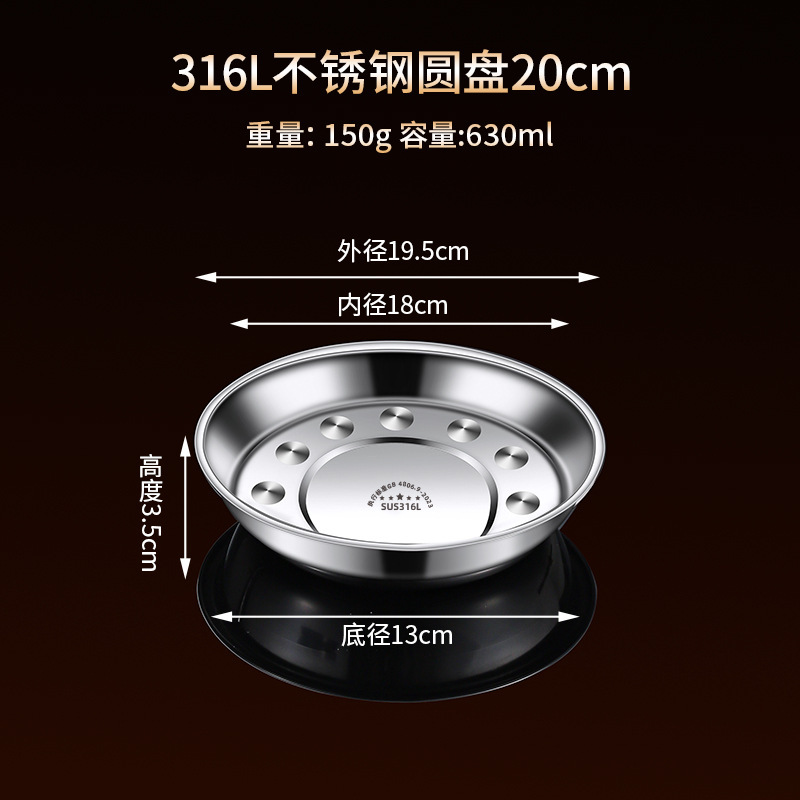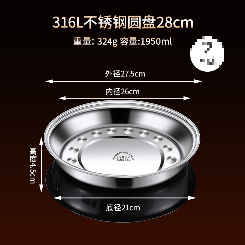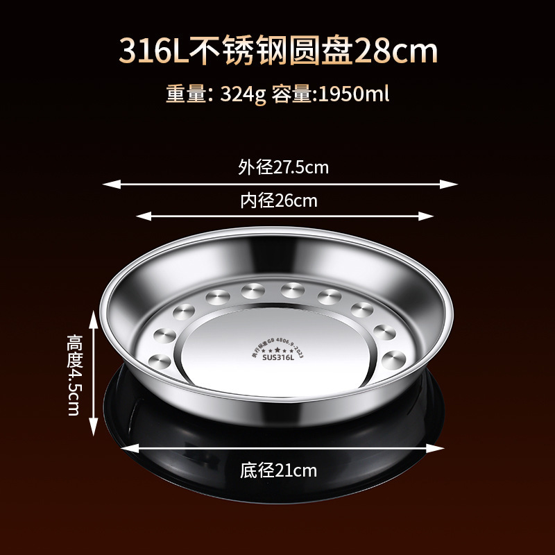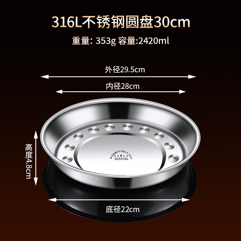 316 스테인레스 스틸 접시, 원형 접시, 식품 등급 접시, 가정용 식사 접시, 찜 접시, 두꺼운 준비 접시, 철 접시