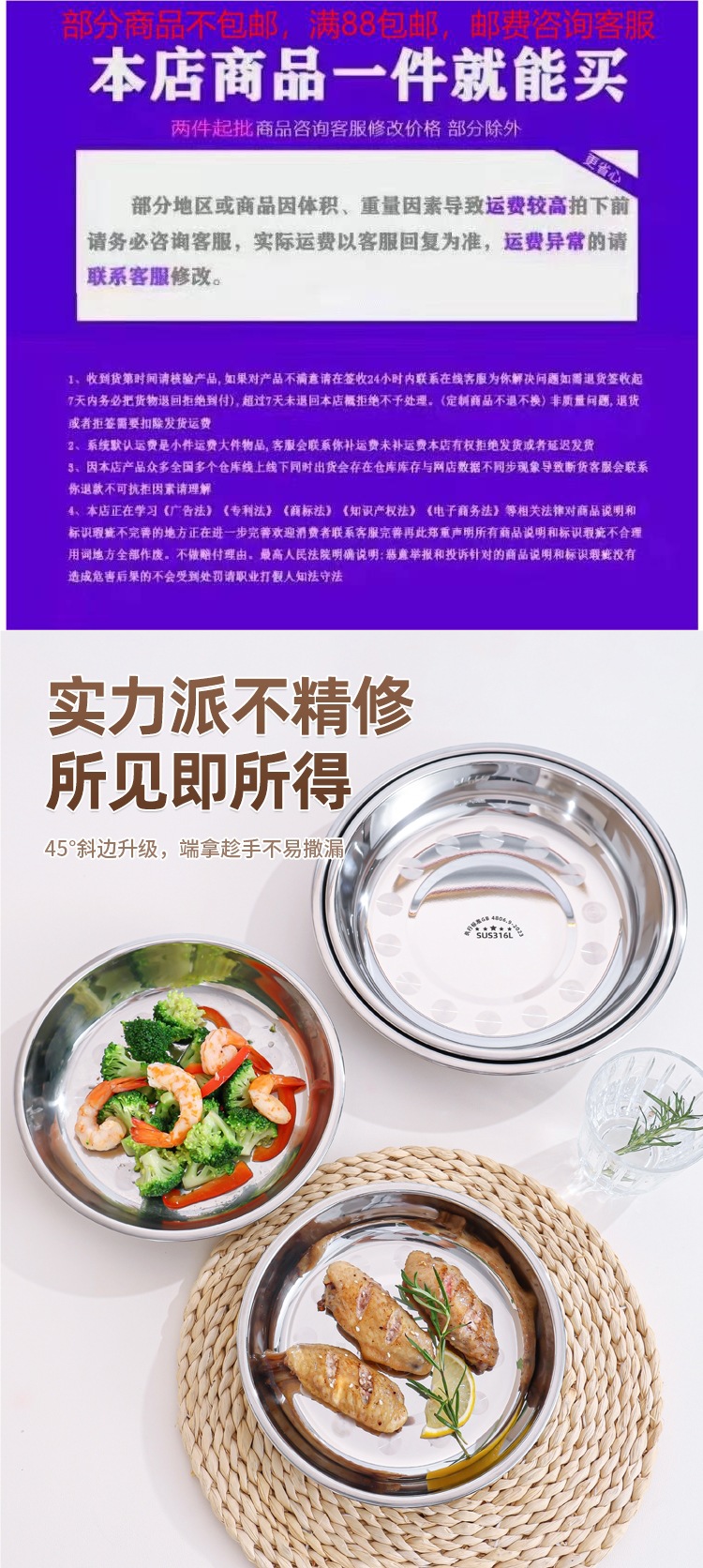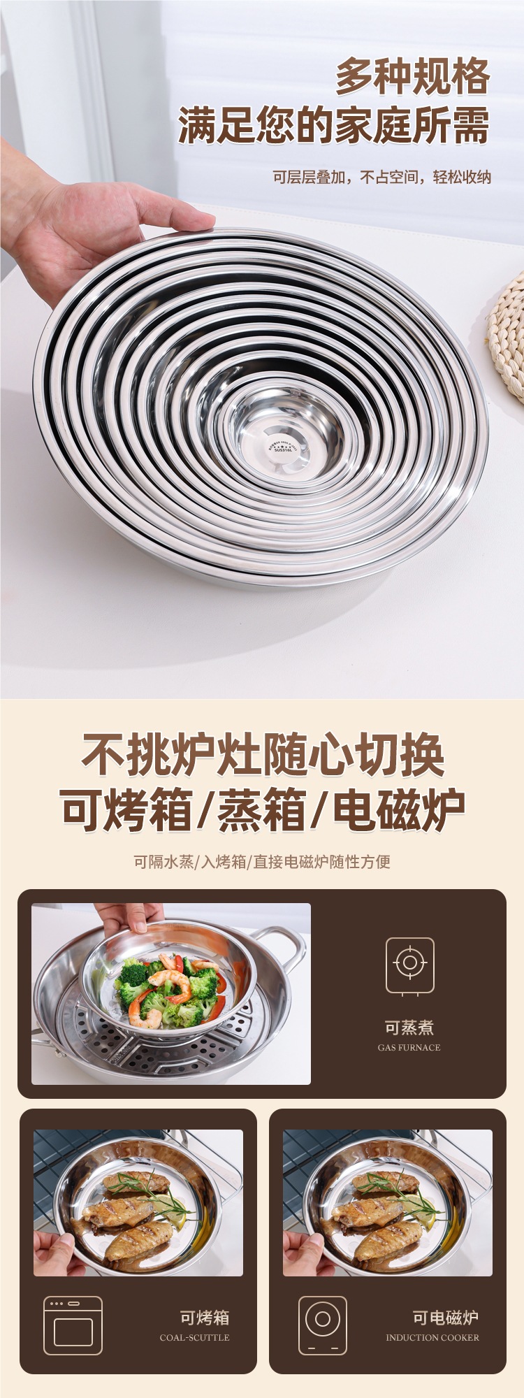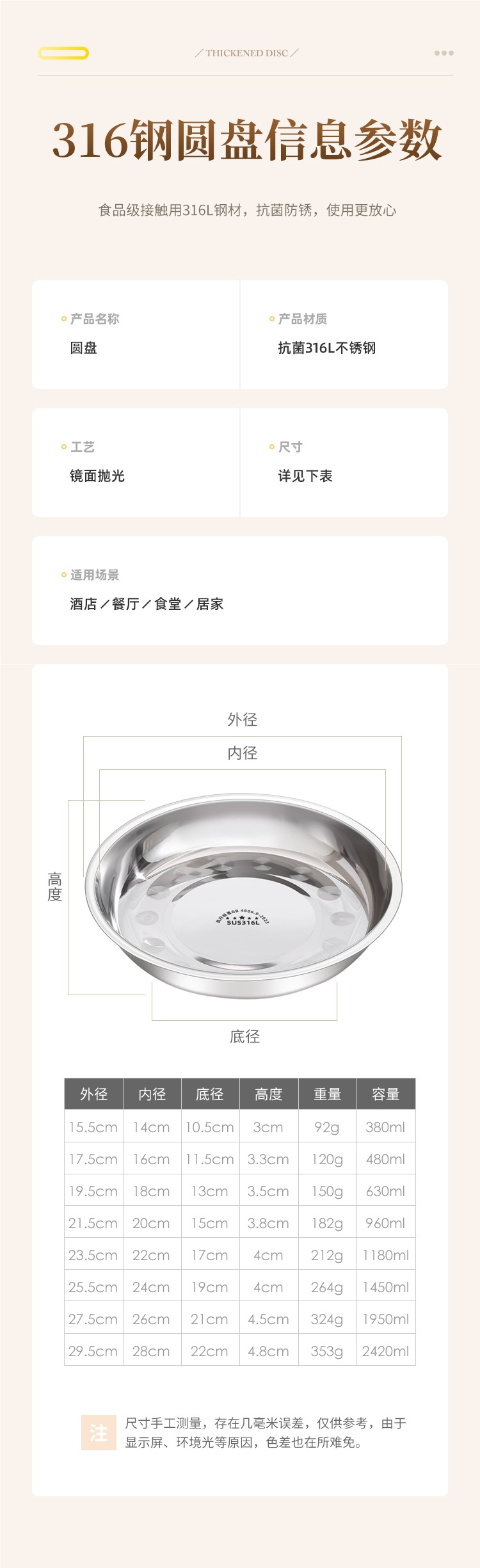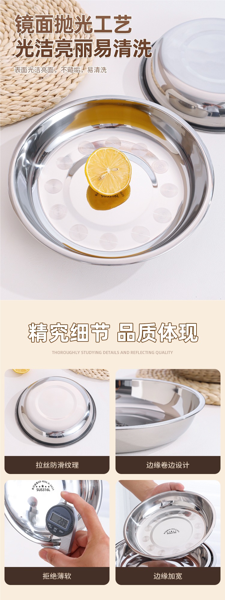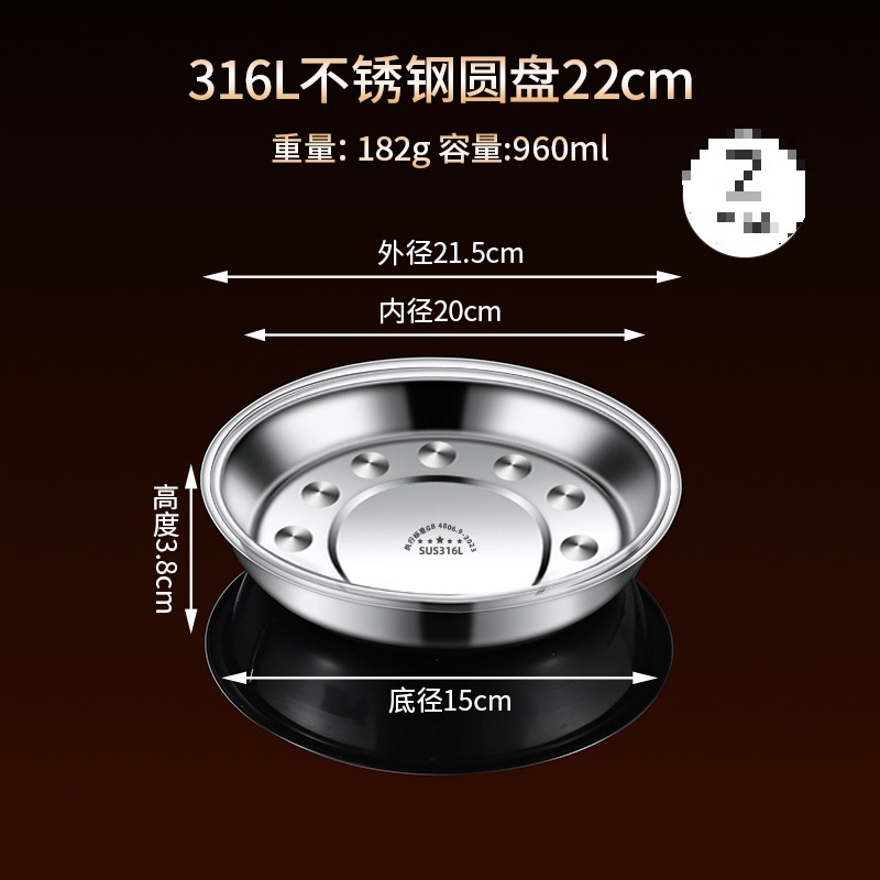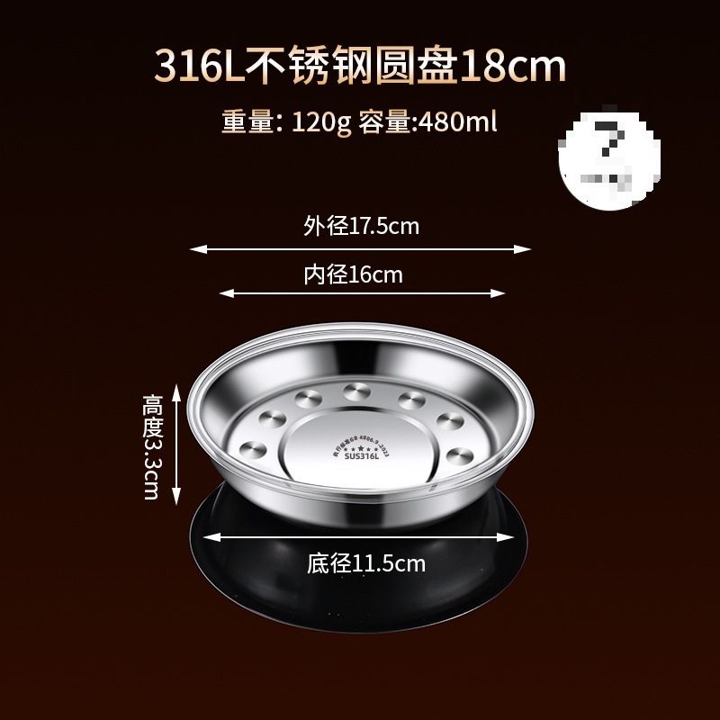 316 스테인레스 스틸 접시, 원형 접시, 식품 등급 접시, 가정용 식사 접시, 찜 접시, 두꺼운 준비 접시, 철 접시