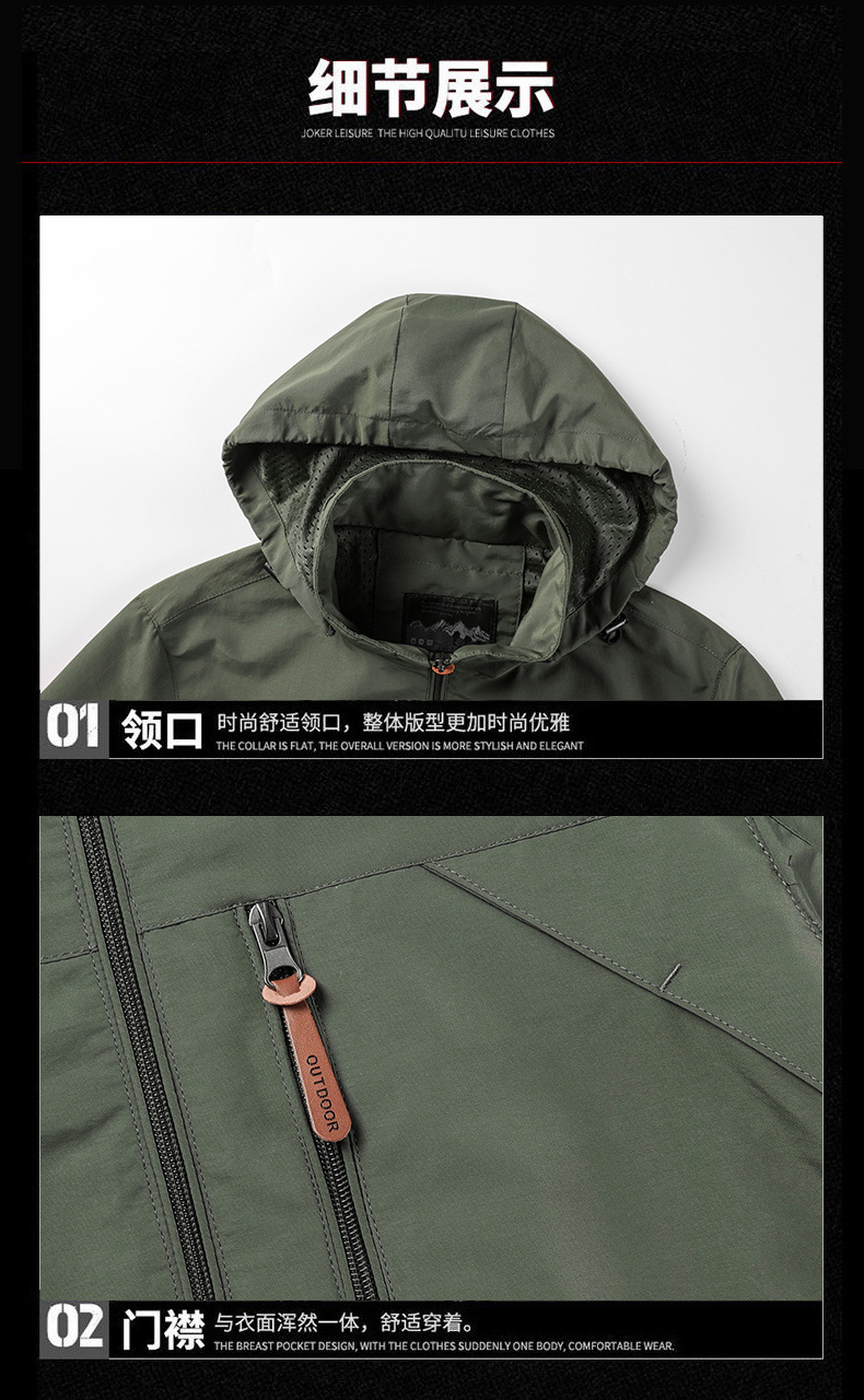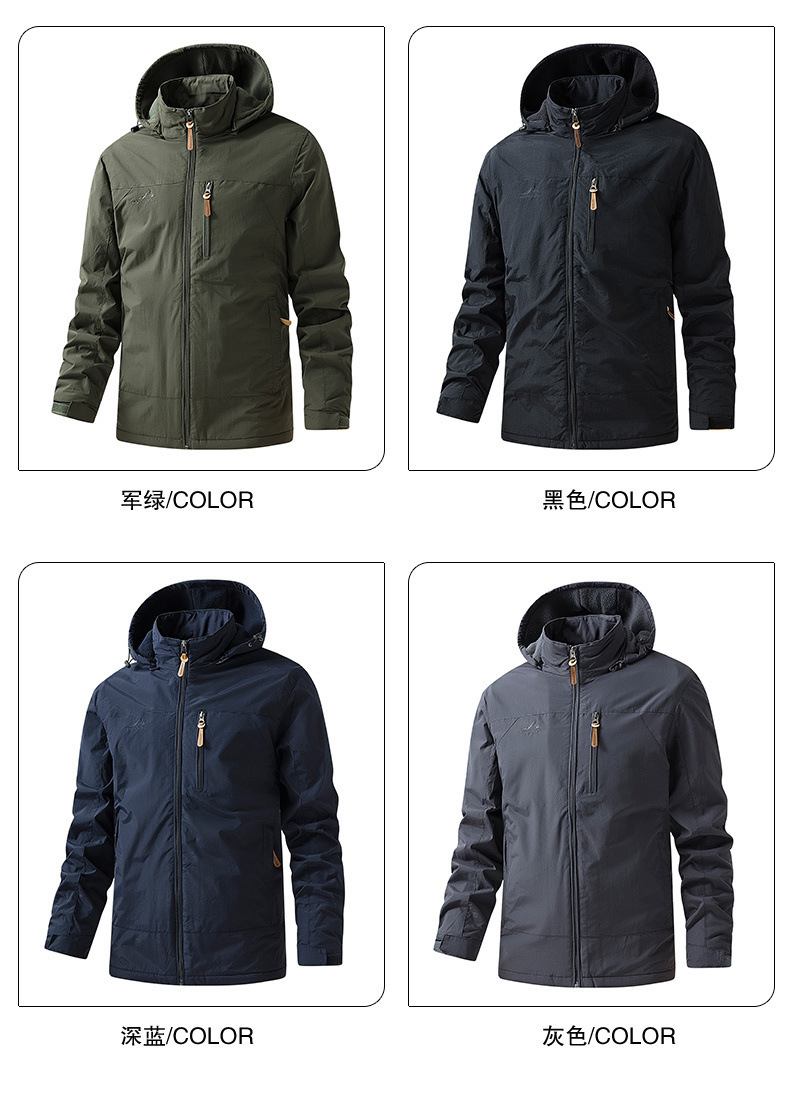 클래식 기술 3중 방풍 및 방수 남성용 야외 벨벳 두꺼운 따뜻한 작업복 재킷