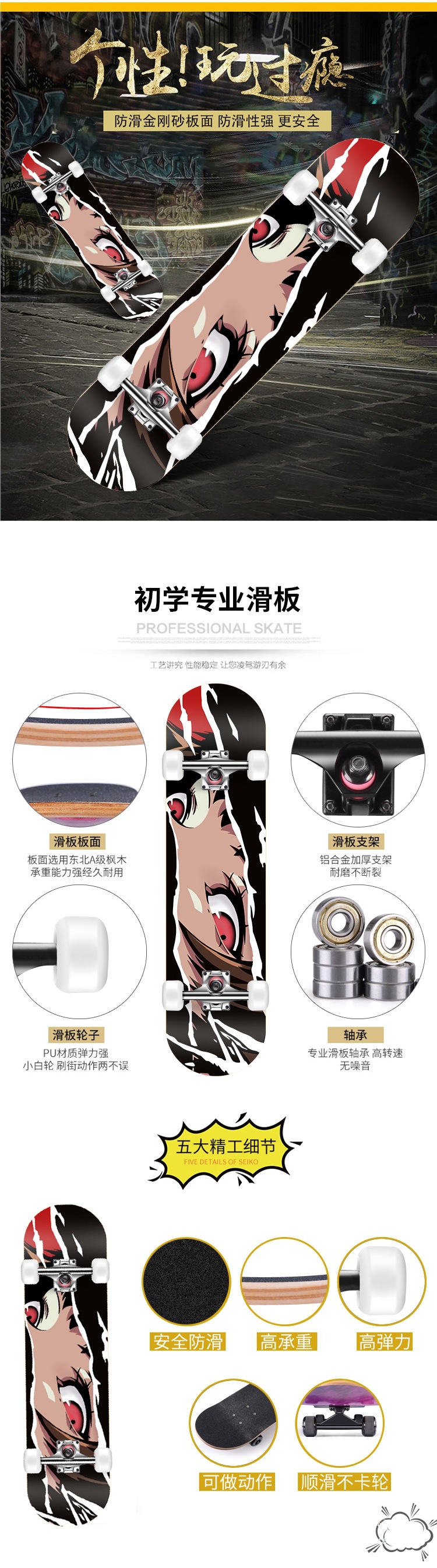초보자를 위한 트렌디한 스케이트보드, 여아용 프로보드, 더블커브, 성인용 청소년 왕이보와 같은 스타일의 4륜 스쿠터