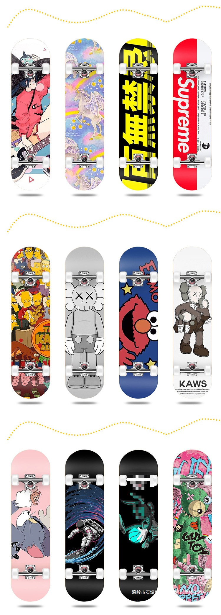 초보자를 위한 트렌디한 스케이트보드, 여아용 프로보드, 더블커브, 성인용 청소년 왕이보와 같은 스타일의 4륜 스쿠터스토어 가기