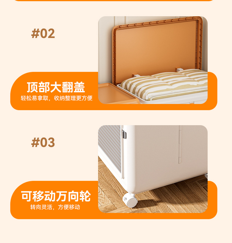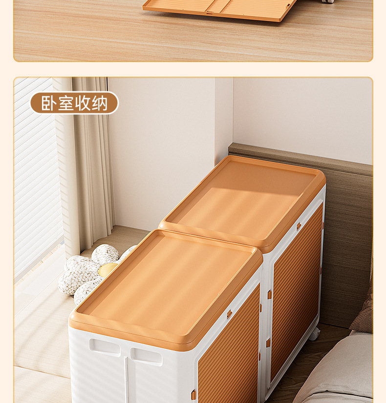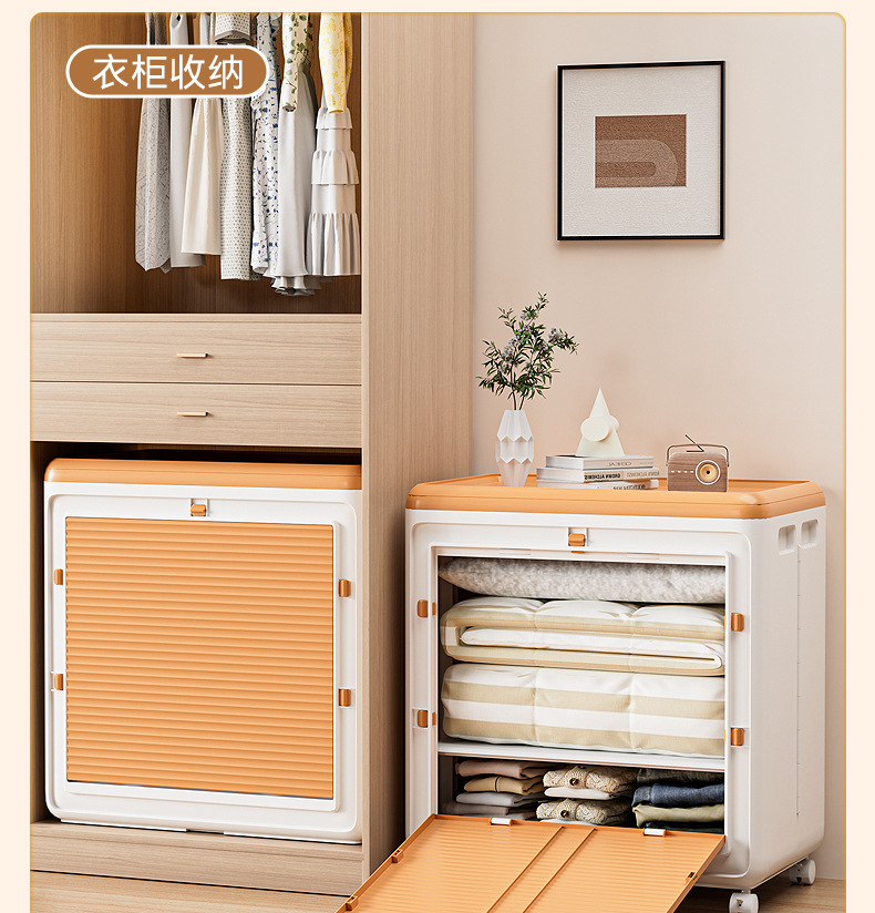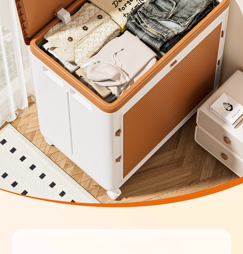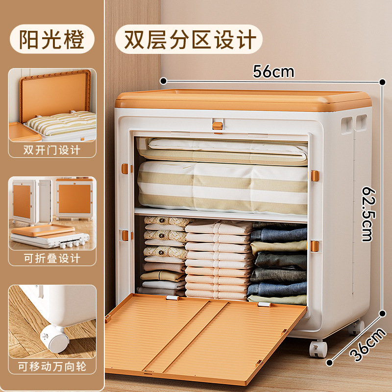 • 【선샤인 오렌지】 접이식 수납 박스 + 바퀴, 양문형, 접이식