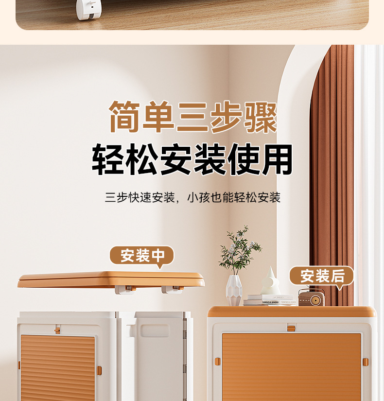• [선샤인오렌지] 접이식 수납박스 + 칸막이 + 도르래, 양문형, 접이식