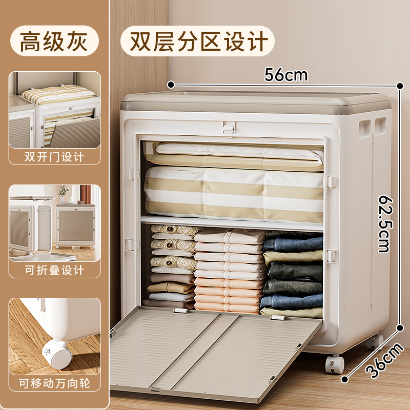 • 【고급 회색】 접이식 수납함 + 바퀴, 양문형, 접이식