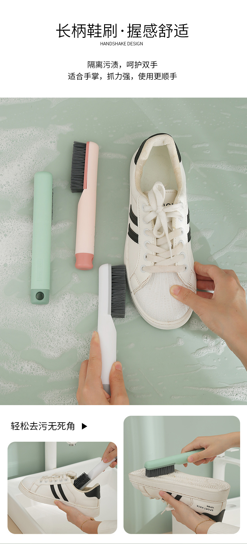 부드러운 강모가 있는 오리지널 긴 손잡이 신발 브러시, 신발을 손상시키지 않는 가정용 플라스틱 대비 색상 신발 세탁 브러시, 세탁 브러시, 다기능 청소 브러시