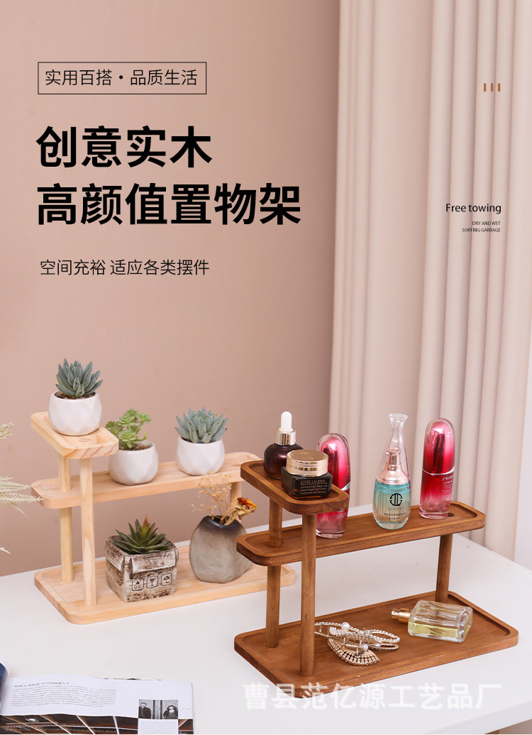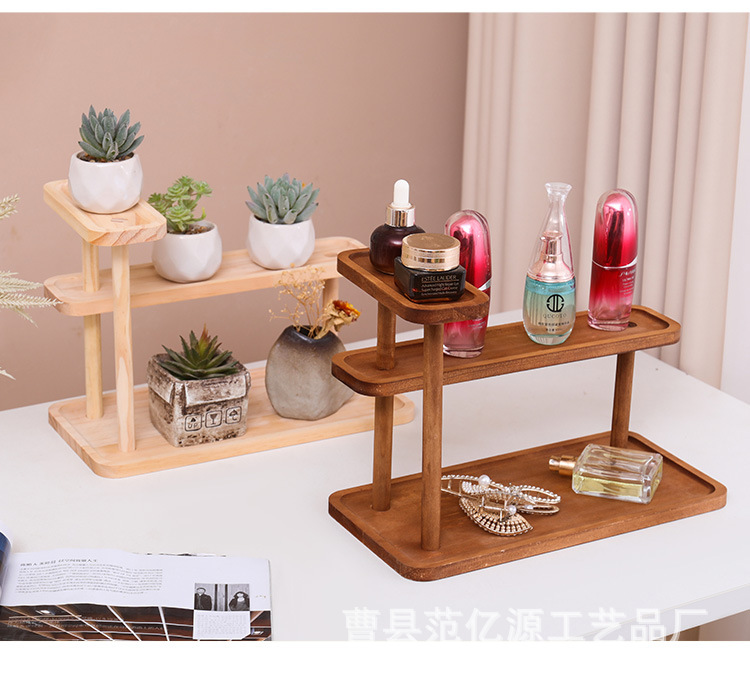 단단한 나무 데스크탑 다층 스토리지 랙 사무실 책상 스토리지 아트 영역 화장품 작은 장식품 디스플레이 정리 꽃 스탠드