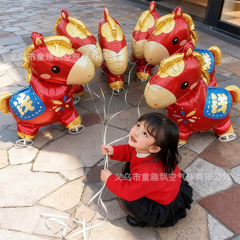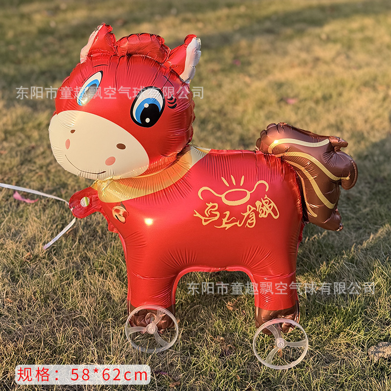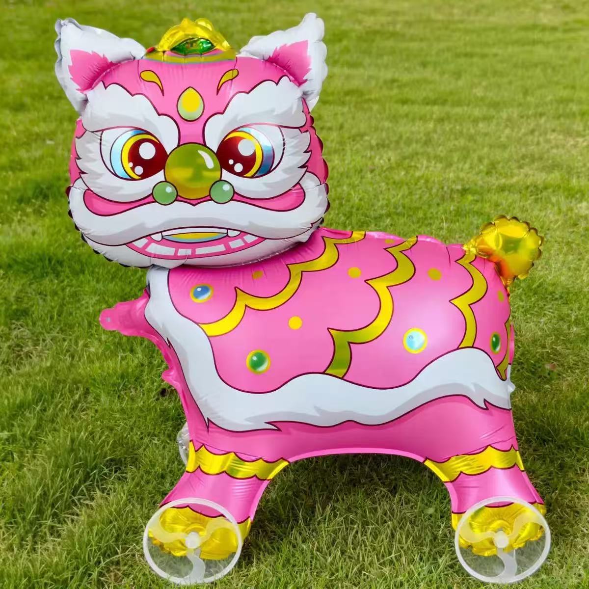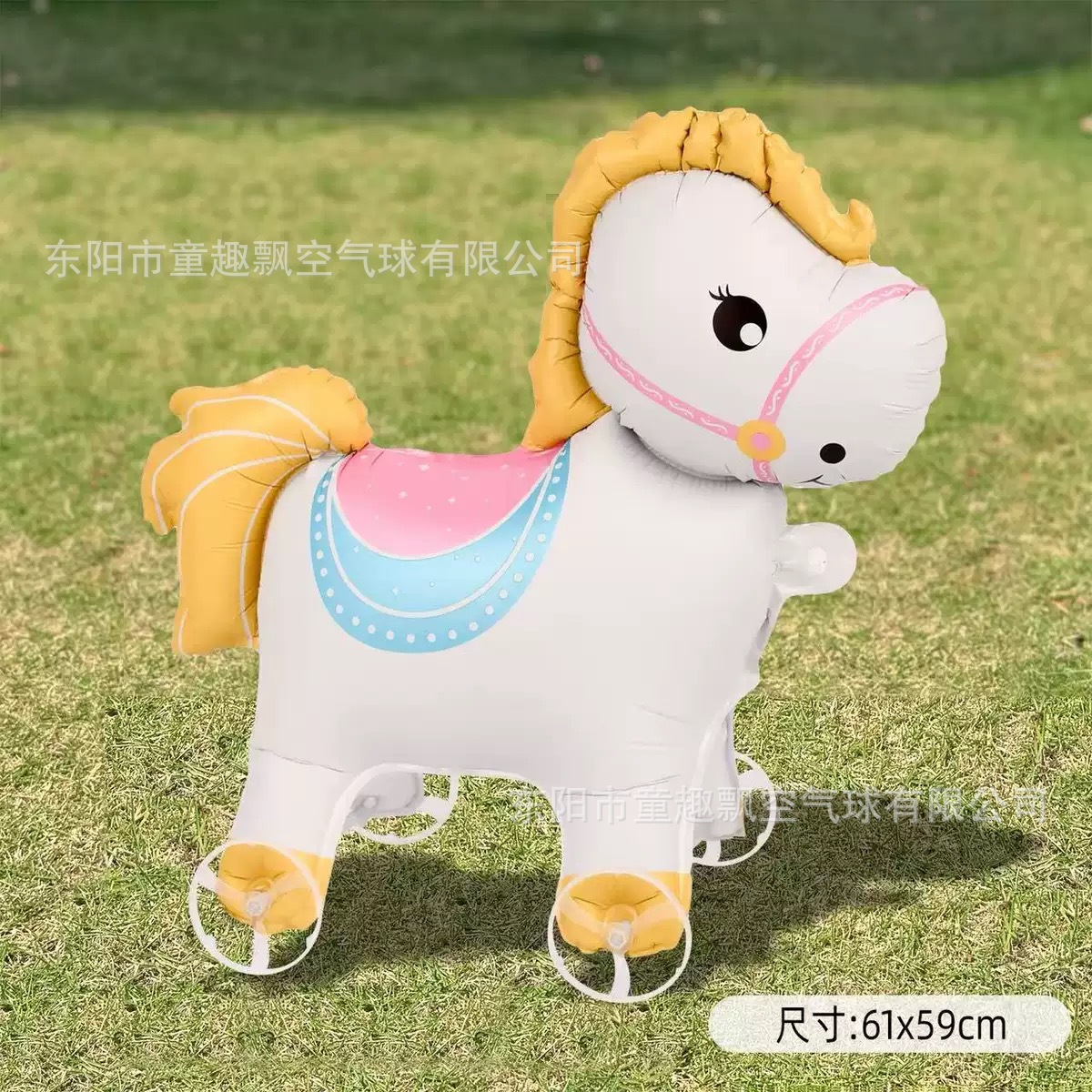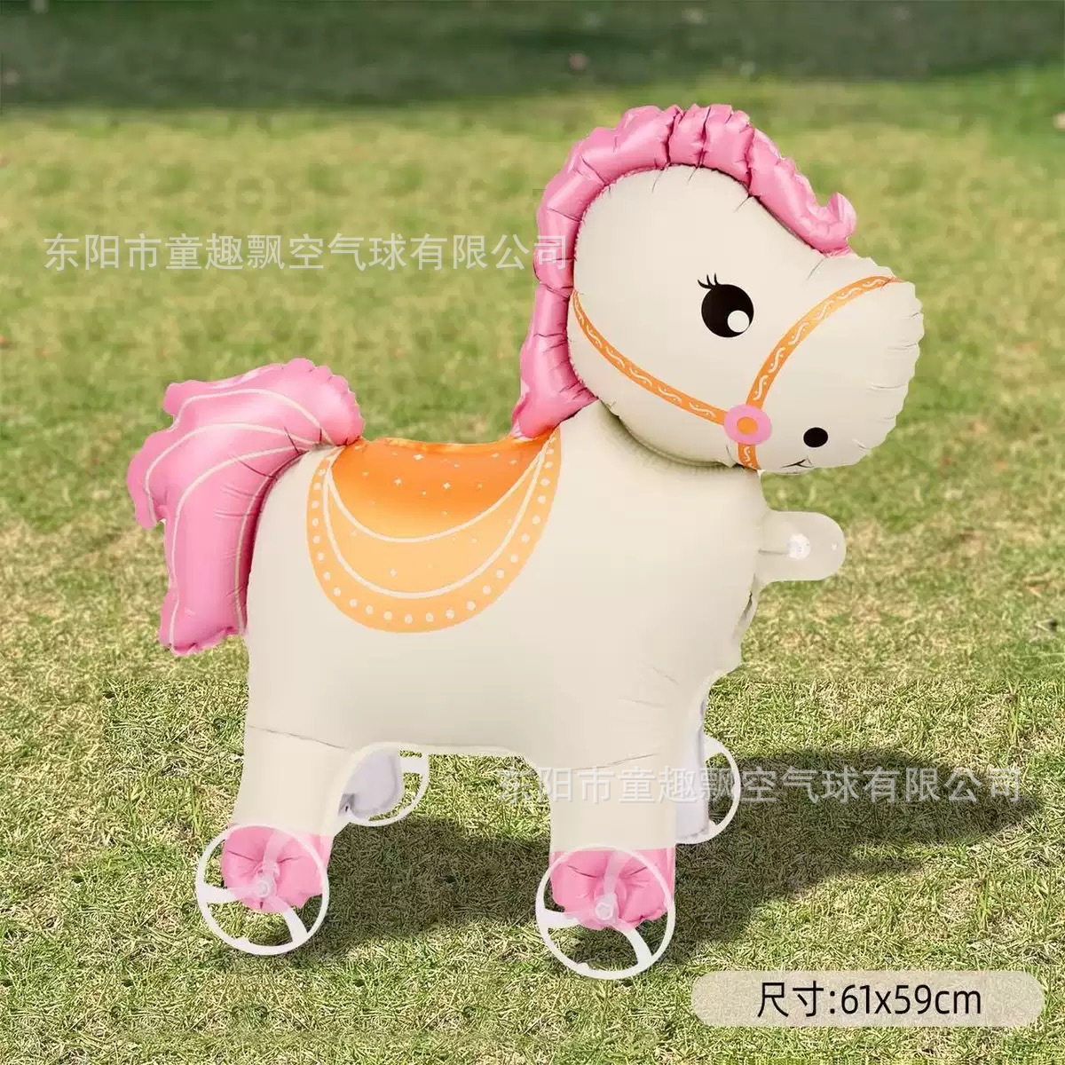 로프 바퀴가 달린 새로운 스타일의 걷기 트롤리 풍선 알루미늄 필름 자체 밀봉 만화 동물 풍선 장난감 풍선 혼합 색상