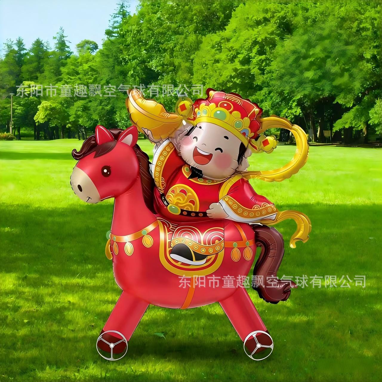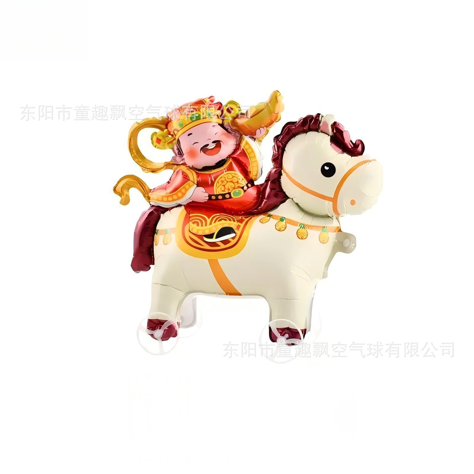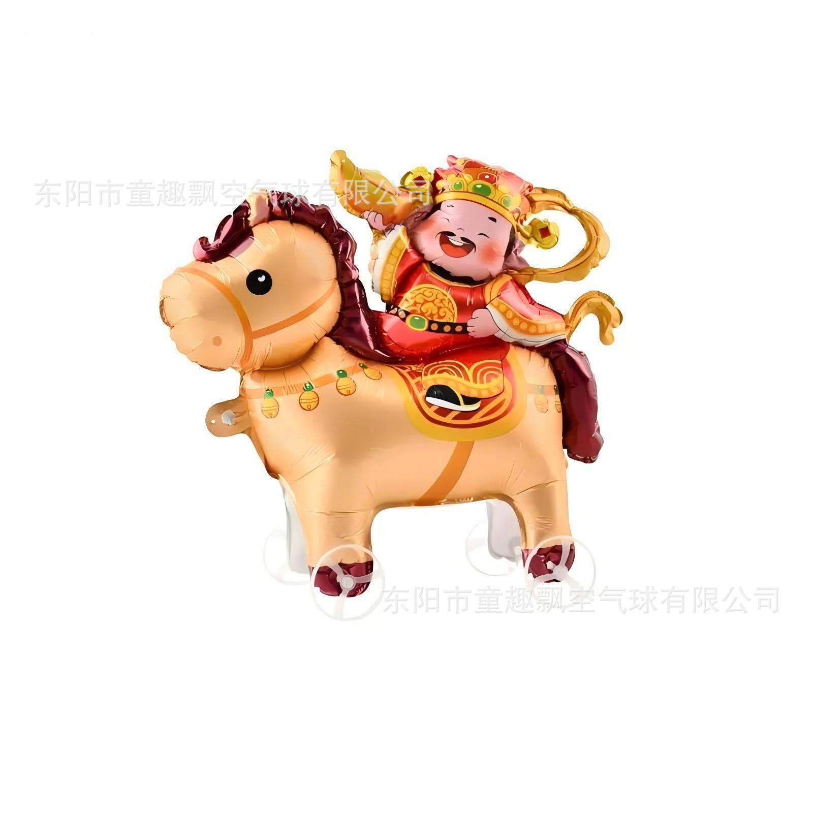 • 바퀴가 달린 작은 사이즈 - 부의 신이 말을 타고 있는 연한 노란색