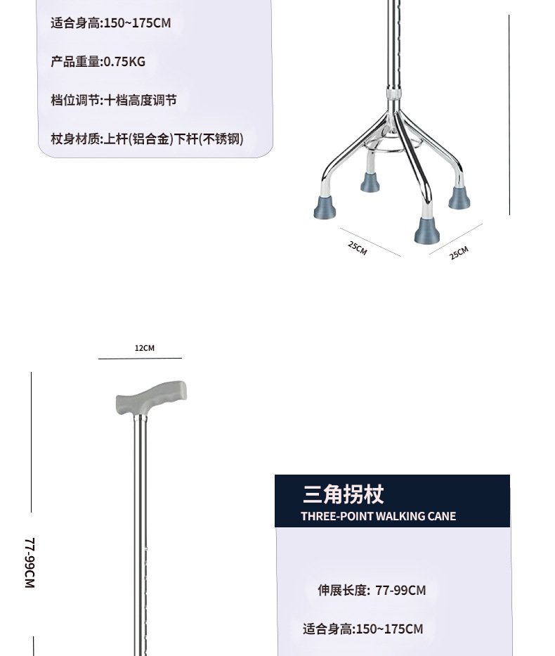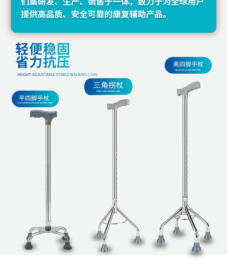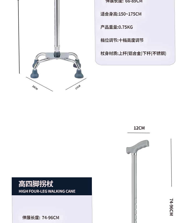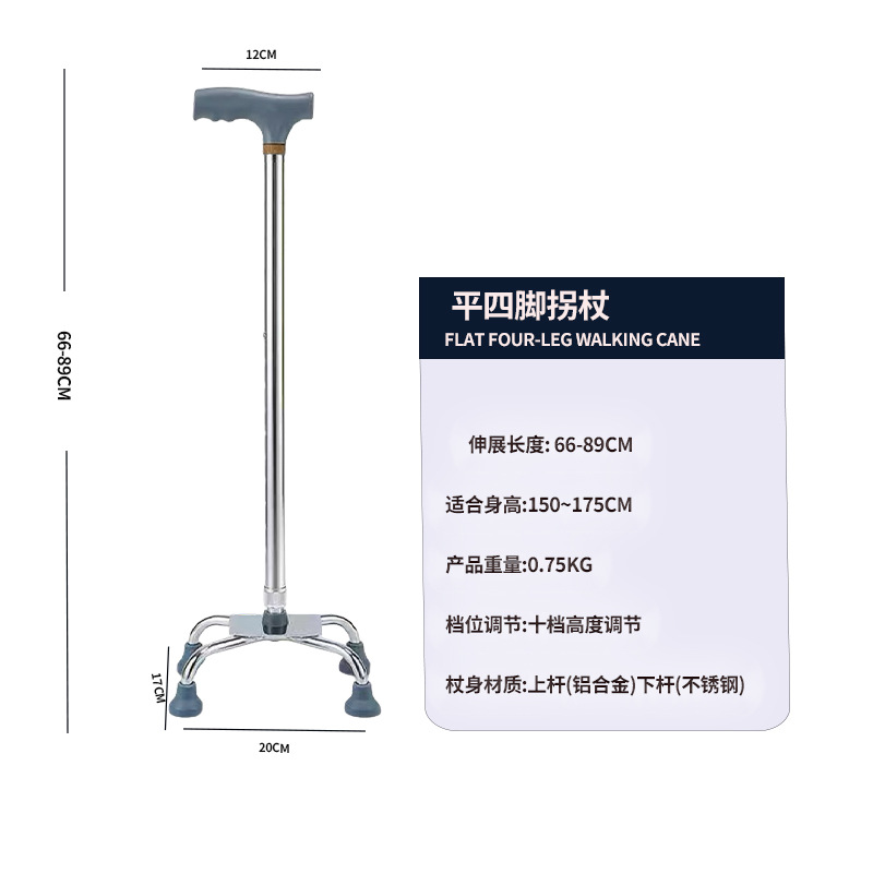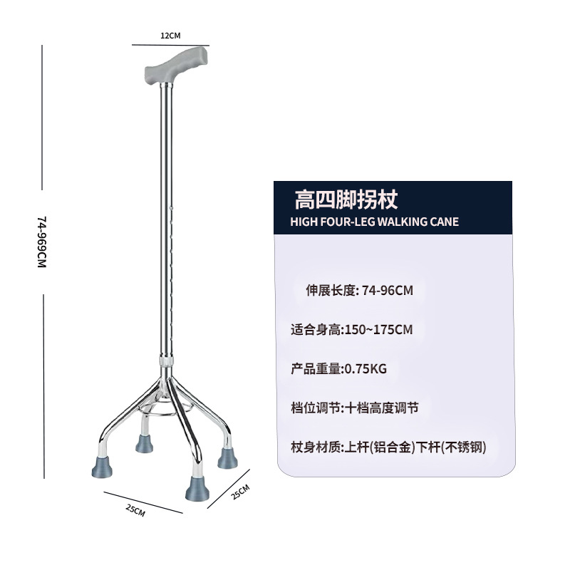 노인용 지팡이, 4개의 다리, 노인용 경량 미끄럼 방지 지팡이, 조명이 있는 다기능 지팡이, 지팡이, 보행 보조기, 지팡이 헤드