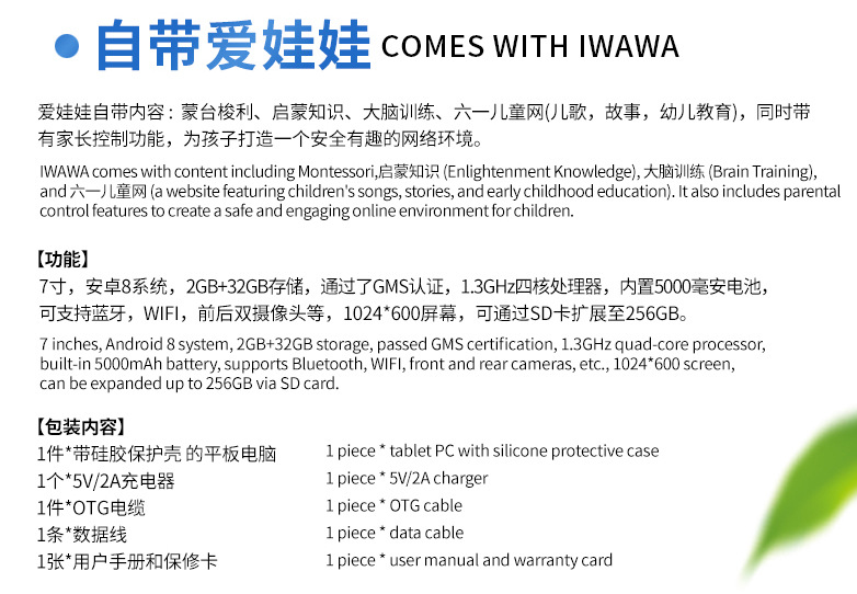 7inch 어린이용 태블릿 PC 새로운 모델은 Bluetooth WIFI를 지원합니다. 국경 간 무역 Android 12 Aida스토어 가기