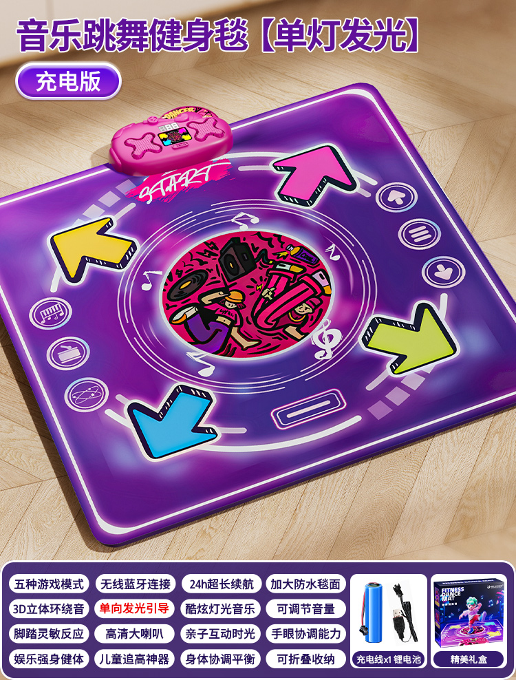• 업그레이드된 뮤직댄스 피트니스 매트 [블루투스/듀얼라이트] 단일 리튬 배터리