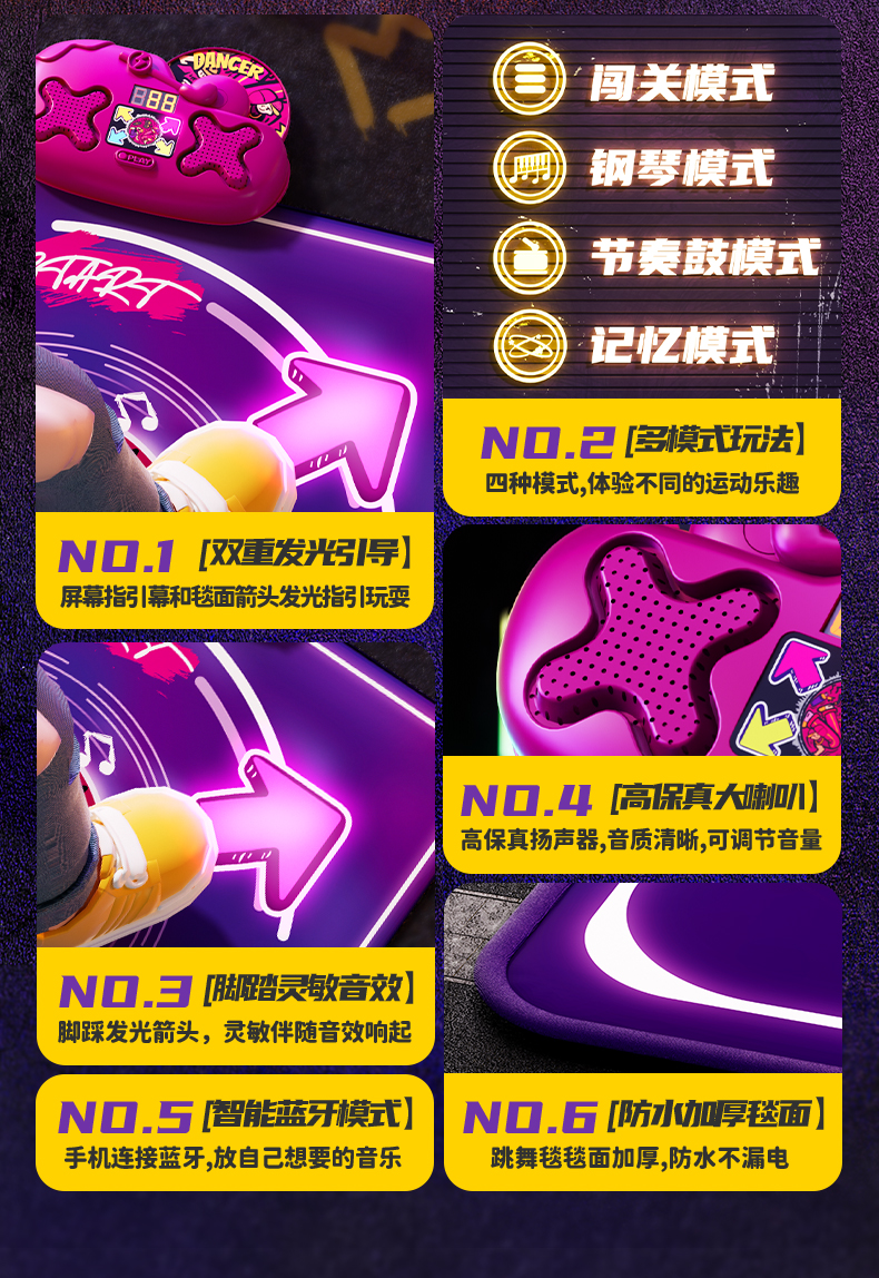 • 업그레이드된 뮤직댄스 피트니스 매트 [블루투스/듀얼라이트] 듀얼리튬배터리