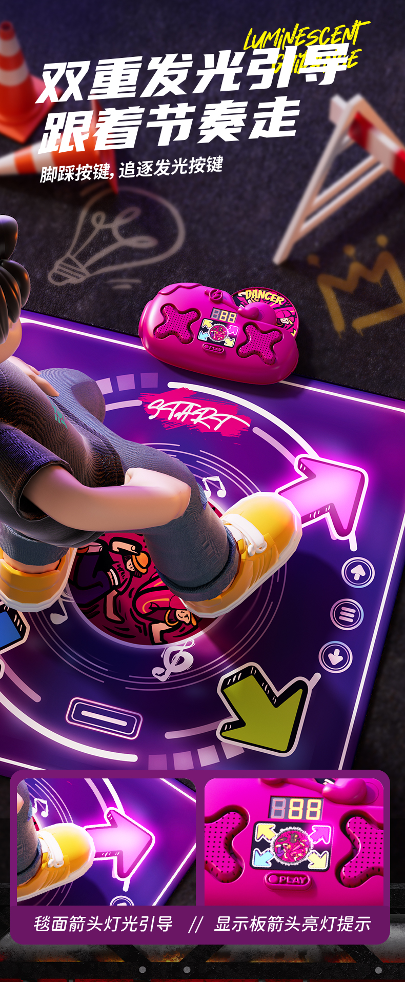 높이뛰기, 싱글 가정용 스포츠 및 피트니스 댄스 머신, 지방 연소 담요, 무선 어린이 음악 게임 장난감스토어 가기