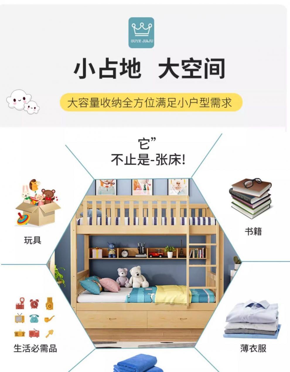 Jijia Diary 모든 단단한 나무 이층 침대 홈 침실 이층 침대 어린이 성인 이층 침대 임대 하우스 기숙사 침대스토어 가기
