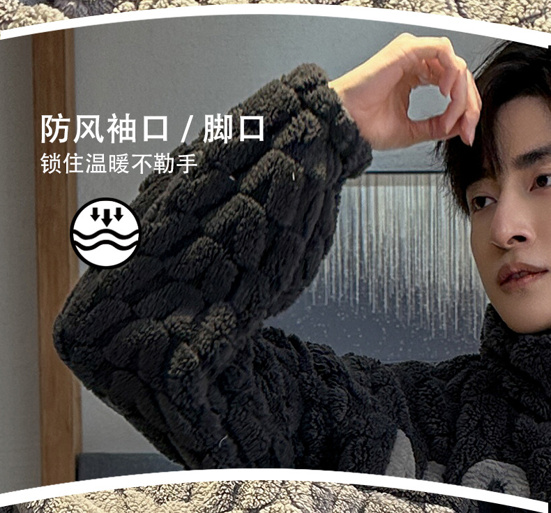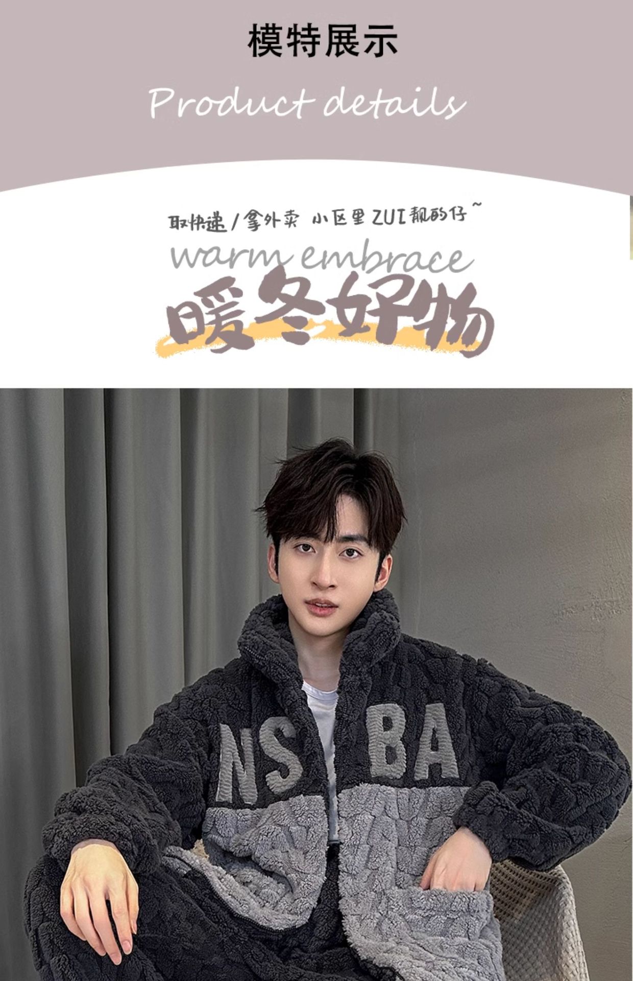 가을 겨울 남성용 산호 벨벳 잠옷 플러스 벨벳 두꺼운 투피스 슈트 남성용 지퍼 플란넬 홈웨어 겨울스토어 가기